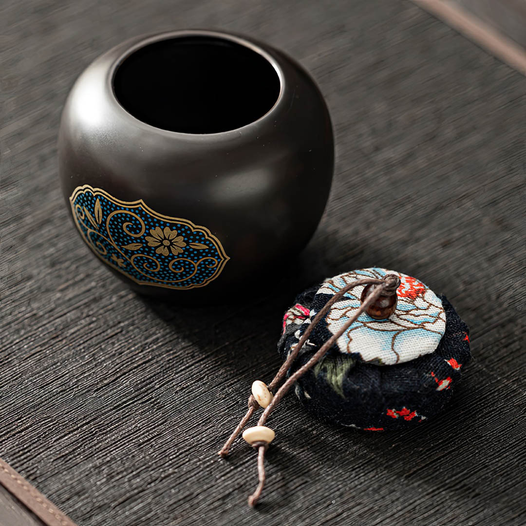 Фарфоровая чайница. Может служить как украшением интерьера, так и придать эстетики вашим чайным путешествиям. Снаружи покрыта глянцевой глазурью и изображением цветов.