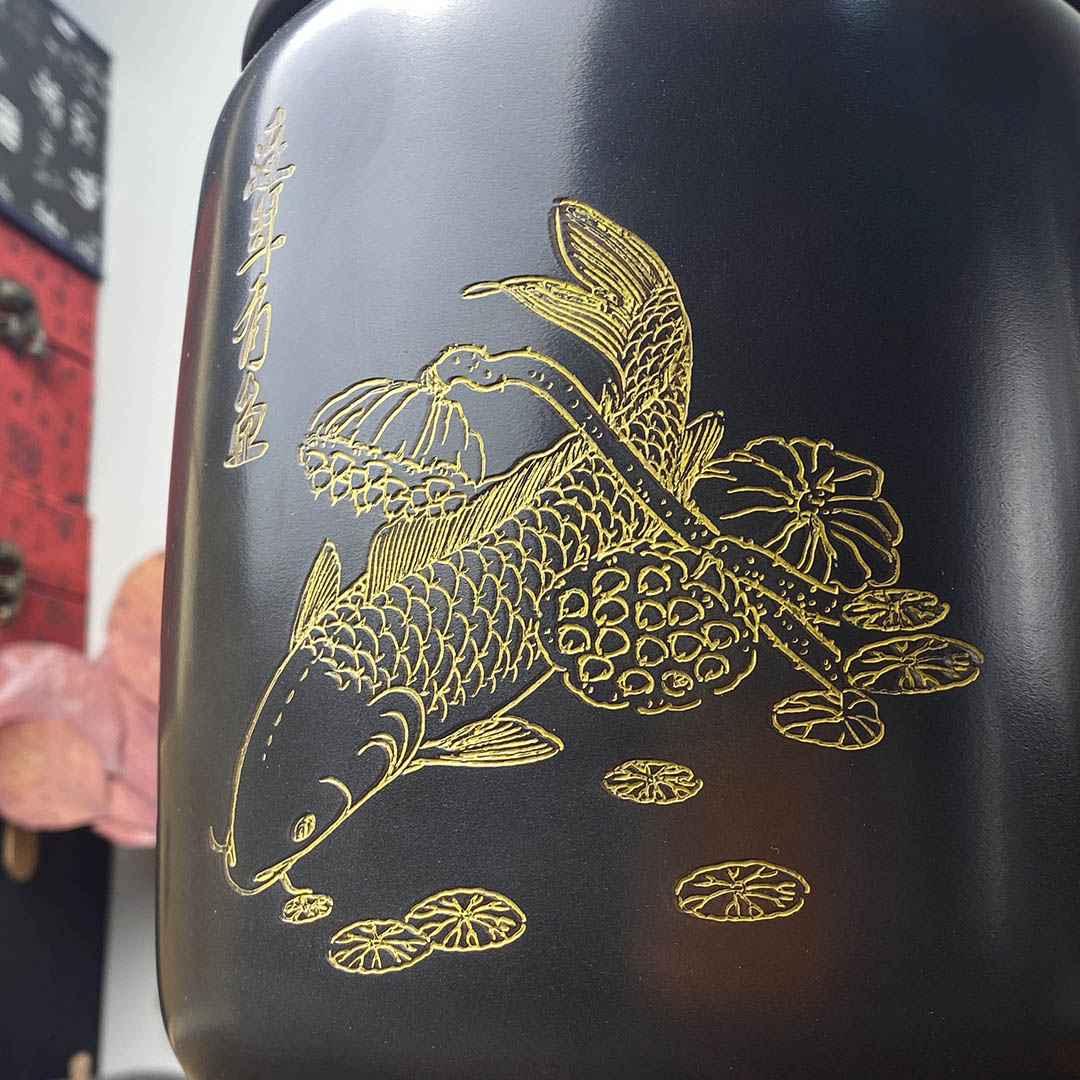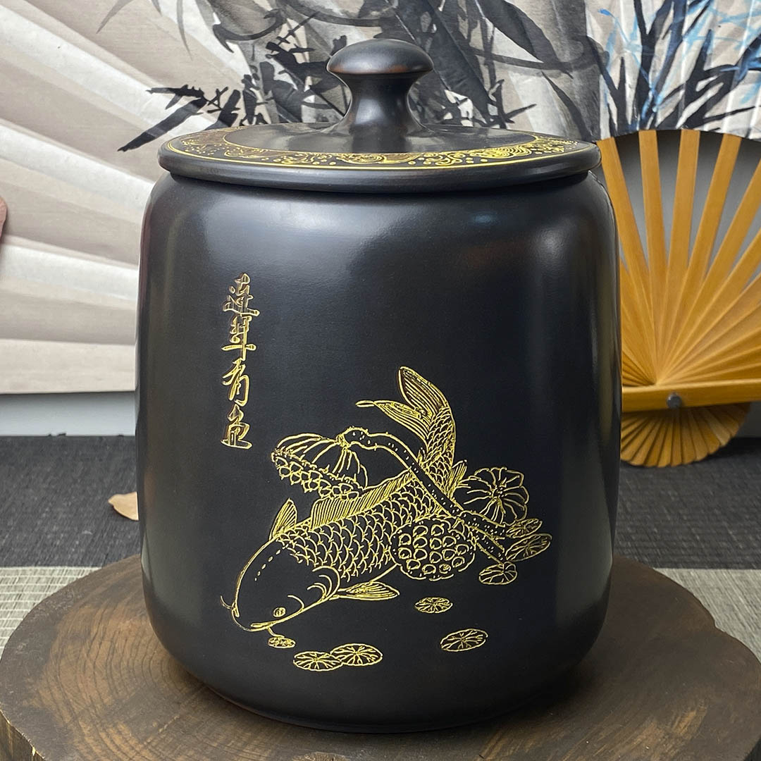 Украшена резным изображением Денежного Карпа – символа упорства и настойчивости, который приносит богатство и изобилие. Надпись на чайнице является пожеланием Изобилия Целый Год. Здесь заключена игра слов: слово «рыба» (鱼) звучит так же, как «изобилие» (余). Поэтому изображение Карпа автоматически означает пожелание богатства и избытка каждый год.