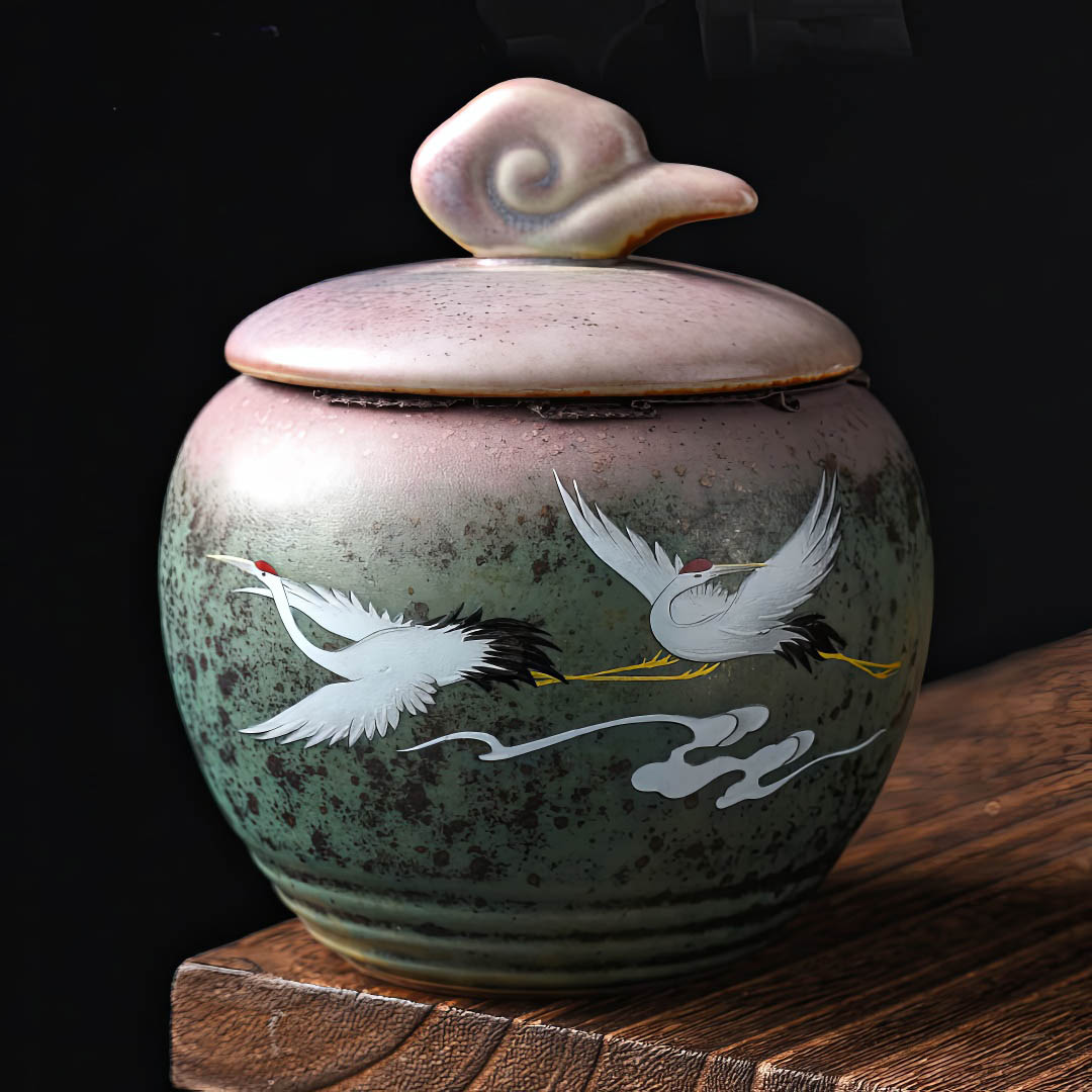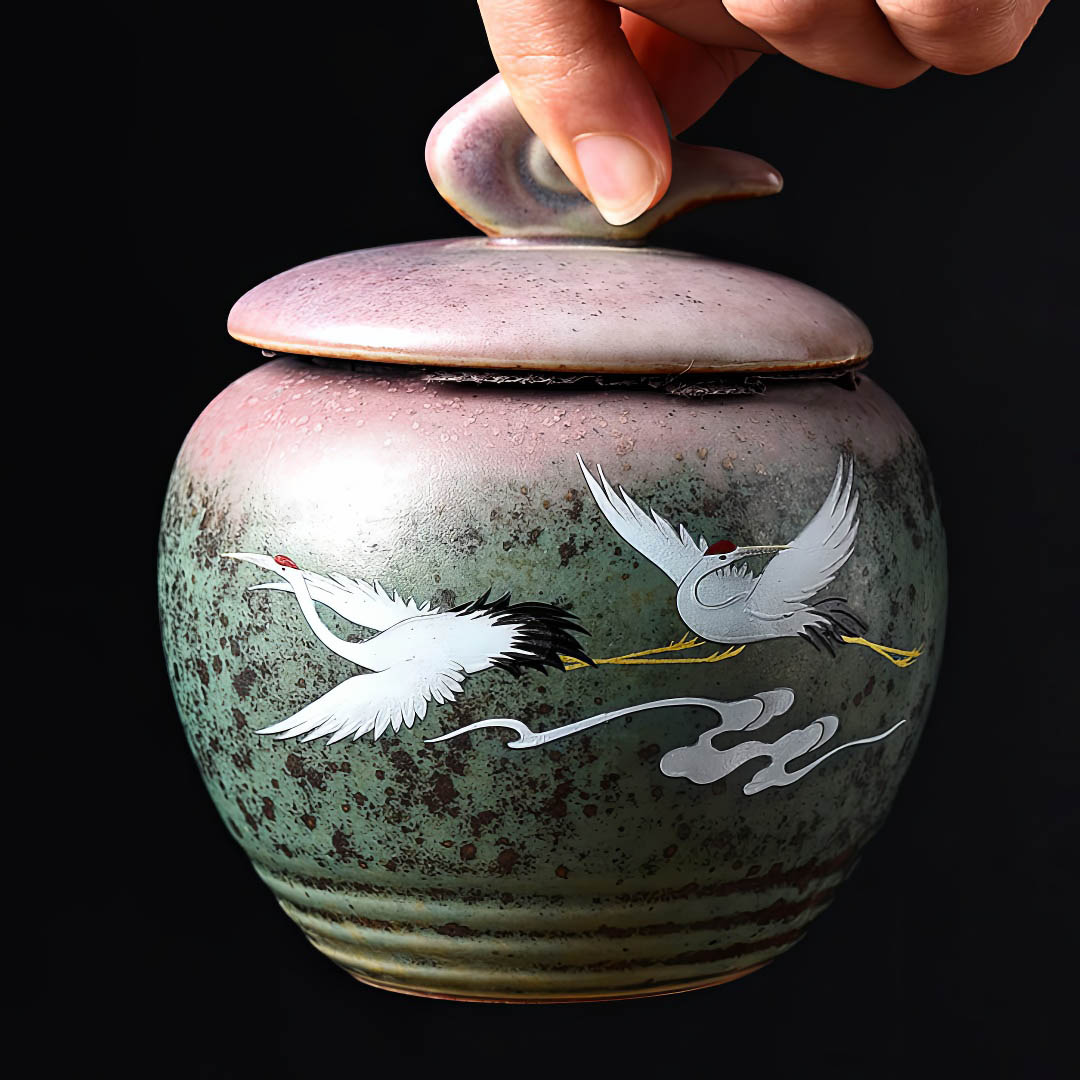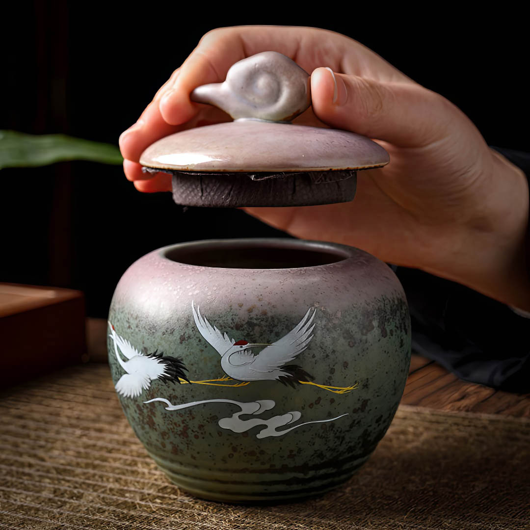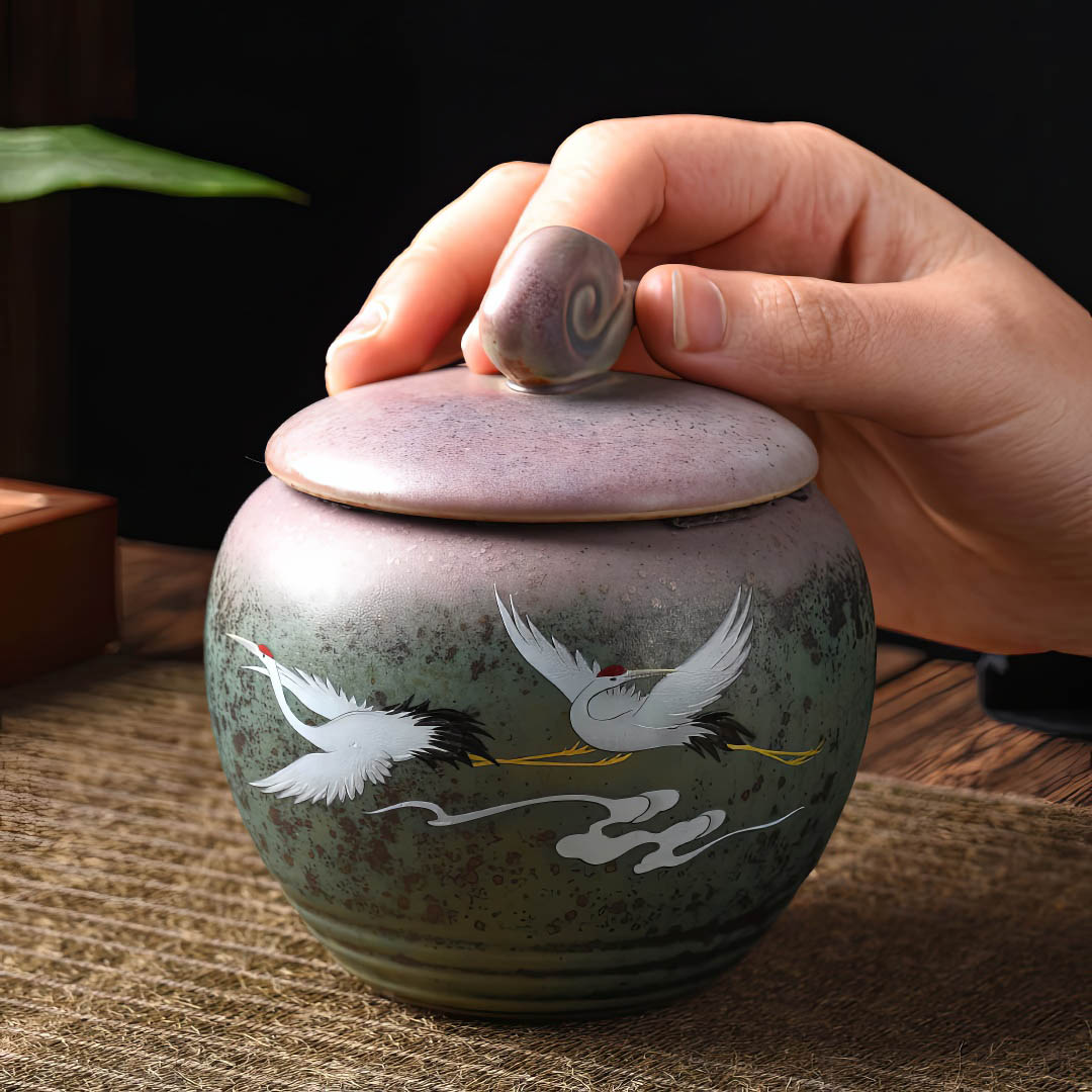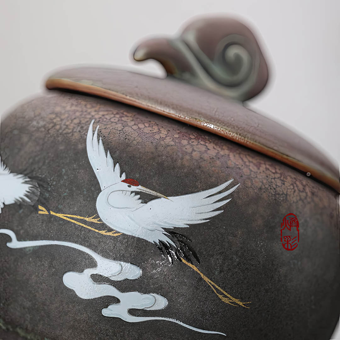Керамическая чайница. Может служить как украшением интерьера, так и придать эстетики вашим чайным путешествиям. Снаружи покрыта матовой глазурью, имитирующей винтажный стиль и “налет времени”.Украшена изображением Журавля – символом здоровья, долголетия, мудрости, преуспевания, высокого положения, благородства и справедливости, а также считается талисманом удачи.Желаем вам уюта и комфорта!) Читать полностью