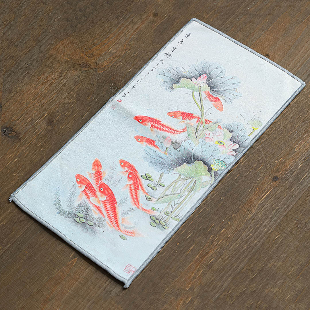 Полотенце для чайной церемонии Двухстороннее 29х16 "Лотос и Карпы №4"