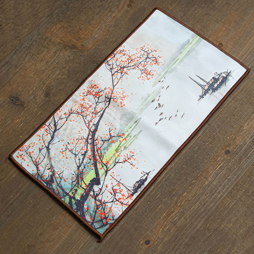 Чайное полотенце. Мягкое и плотное, приятное на ощупь. Двухстороннее. Снаружи замша с симпатичным принтом. Внутренняя сторона махровая. Хорошо впитывает воду. Используется для поддержания чистоты чайного пространства и ухода за чайником.