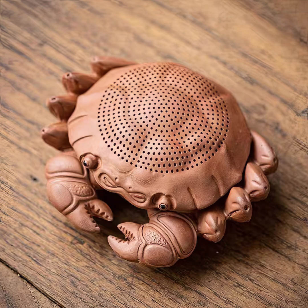 Сито из глины с подставкой для чайной церемонии.Краб в китайской символике олицетворяет устойчивость и защиту благодаря своему панцирю, а его способность двигаться боком ассоциируется с гибкостью. Он также символизирует богатство и гармонию из-за созвучия слов xiè (краб) и xié (гармония). В даосской традиции краб связывается с Луной и долголетием, так как, линяя, он будто обновляет свою жизнь.Материал: глина.Размеры: 9 х 8 х 3 см.Сито: 7,5 х 2,2 см.Приятного чаепития! Читать полностью
