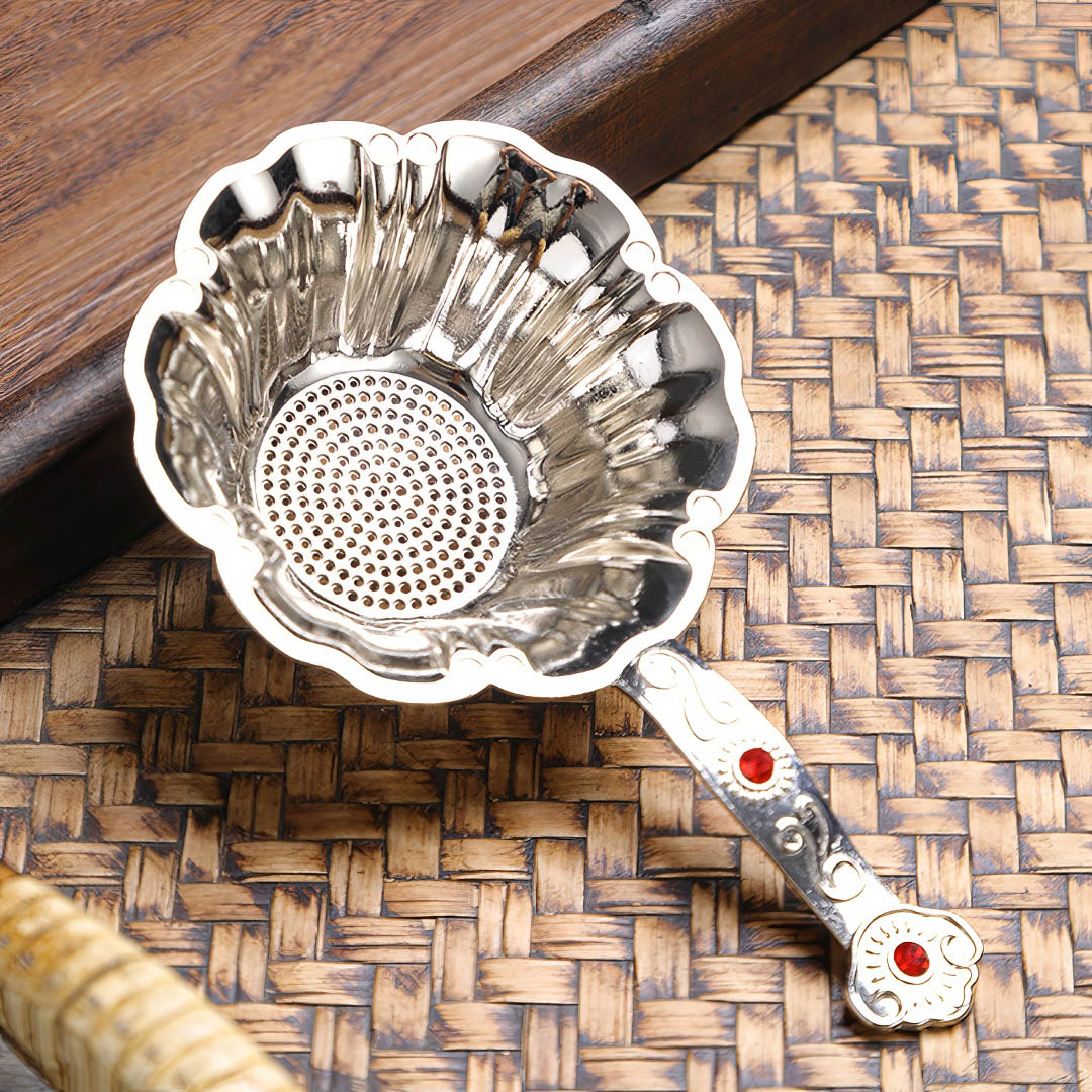 Металлическое сито для чайной церемонии. Украшение сита вдохновлено Жезлом Исполнения Желаний, он же Жезл Руи — это волшебный посох, обладающий невероятными способностями. Его название можно перевести как «Золотой посох с обручами, следующий воле» или «Посох, исполняющий желания». Именно он является главным оружием и верным спутником Короля Обезьян — Сунь Укуна, главного героя романа У Чэнъэня «Путешествие на Запад» (XVI век).