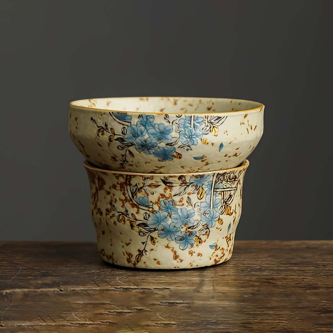 Керамическое сито родом из провинции Фуцзянь. Сито покрыто авторской глазурью, имитирующей древний камень с золотой инкрустацией.