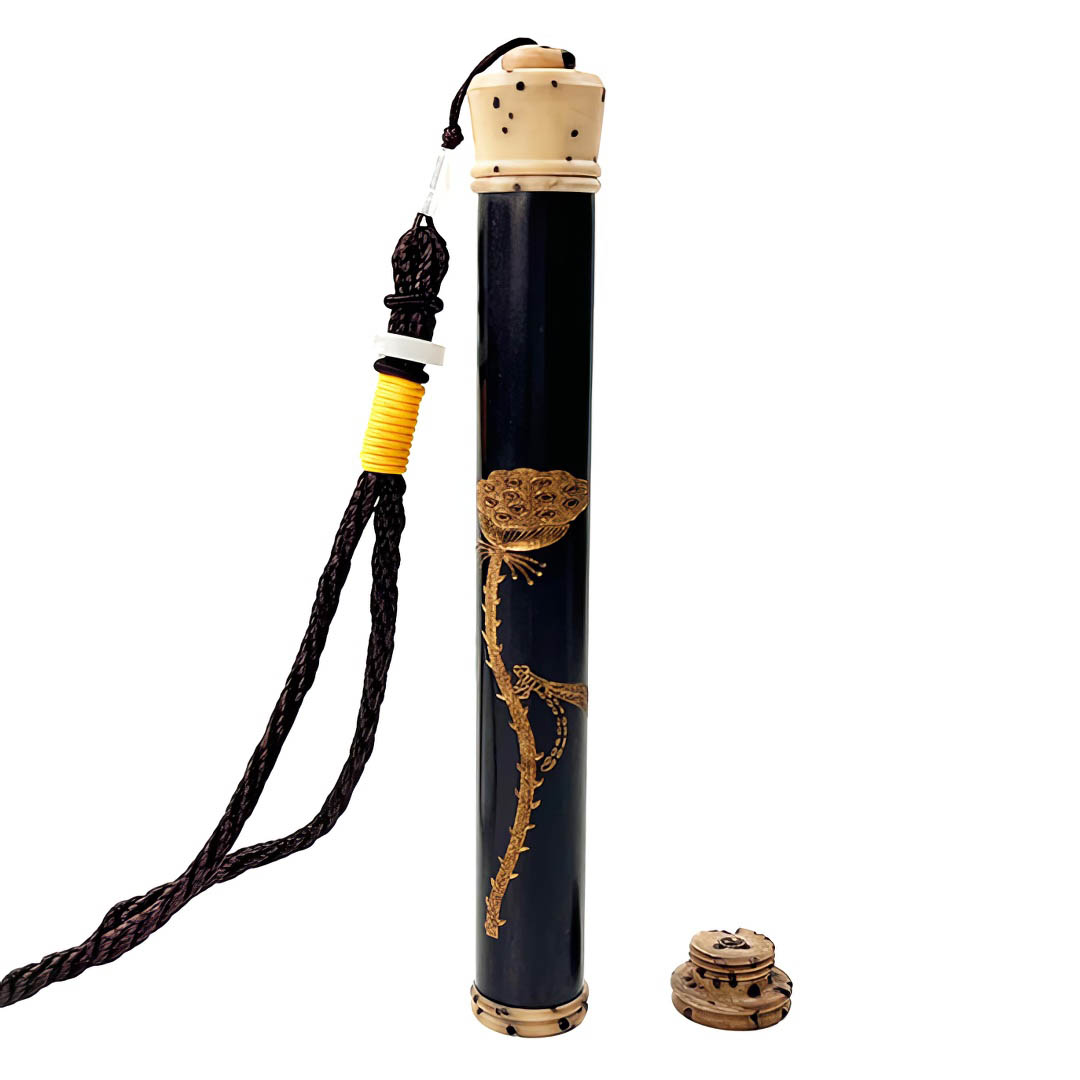 Тубус для благовоний. Изготовлен из массива дерева Венге, твердого и тяжелого. Помещается примерно 10 грамм безосновных ароматических палочек. Крышечка представляет из себя подставку для аромапалочек. В Китае лотос символизирует чистоту, духовное раскрытие, мудрость.Материал: дерево Венге.Размеры: 14.5 см.Высота подставки: 1 см. Диаметр подставки: 1,7 см.Внутренний диаметр: 1,7 см.Желаем вам благополучия! Читать полностью