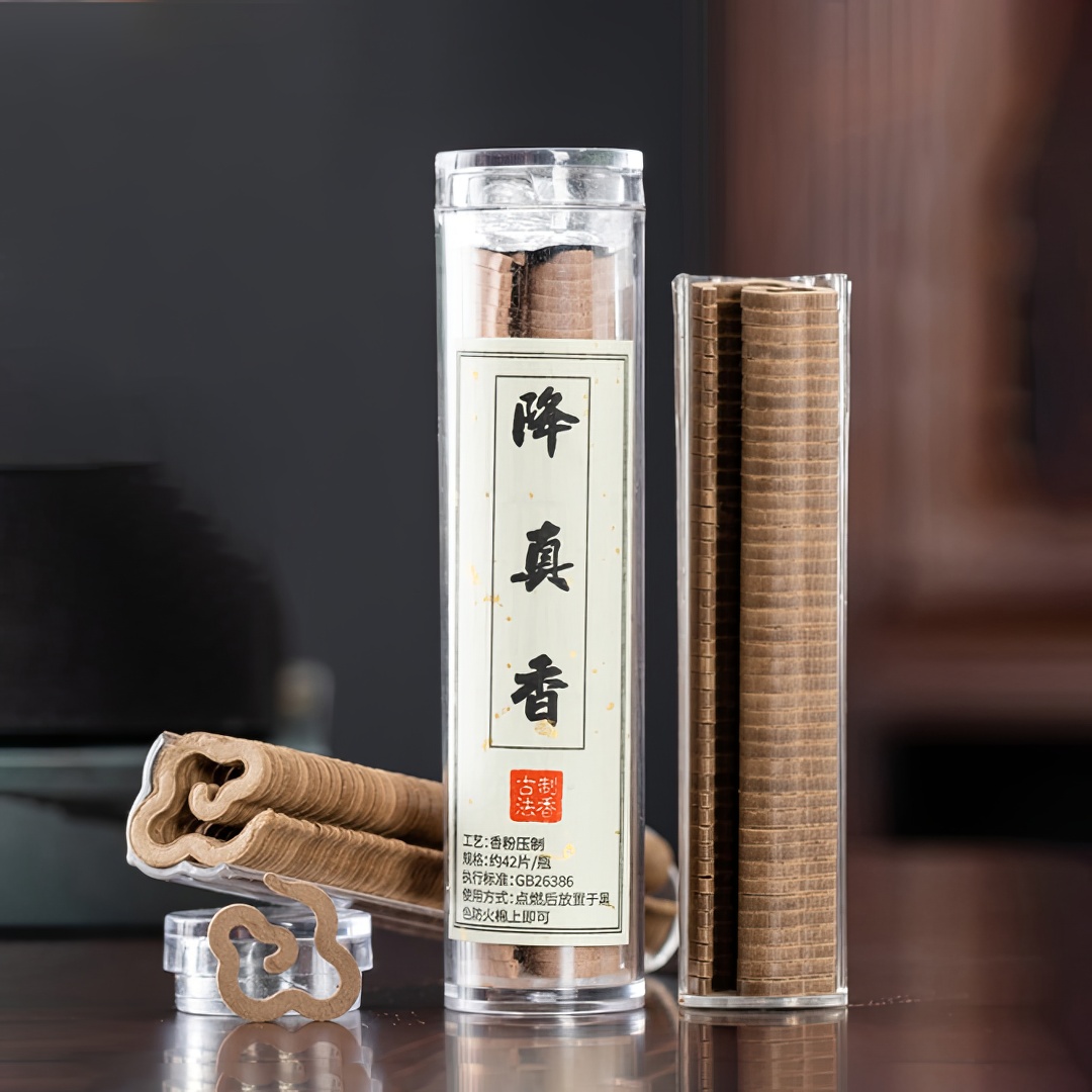 Благовония порошковые, формованные в виде маленького облака. Количество 42 шт. Упаковано в симпатичный тубус для удобства хранения и транспортировки. В комплекте маленькая огнеупорная подушечка.