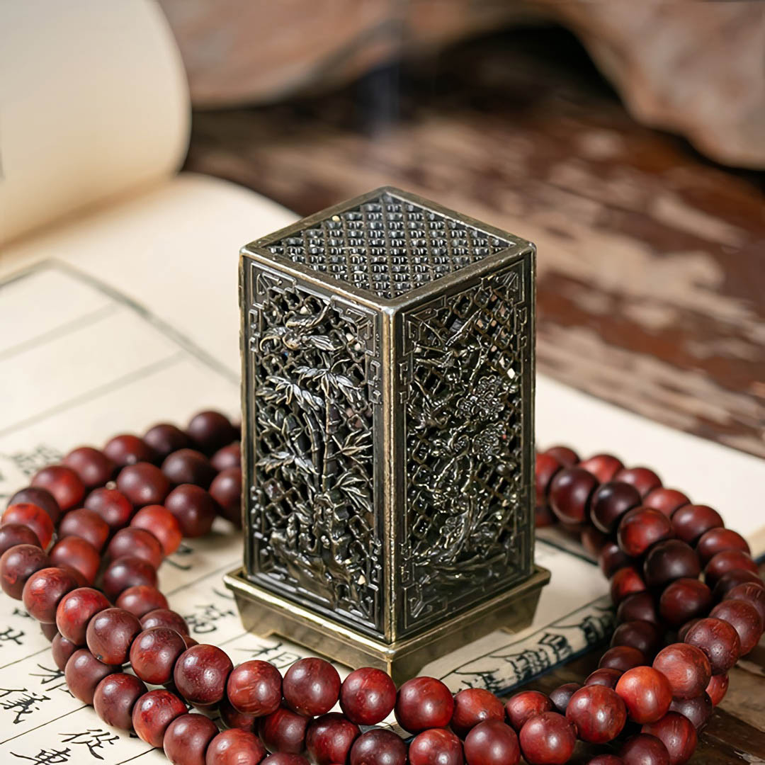 Металлическая курильница, предназначена для конусных благовоний и благовоний с обратным потоком. Помимо основного назначения также служит отличным украшением интерьера.Украшена Четырьмя Благородными Растениями – слива, орхидея, бамбук и хризантема. Считается, что они символизируют качества, которыми должен обладать благородный человек: прямоту характера, скромность, искренность мыслей и чувств.В комплекте огнеупорная подушечка – 2,5 см.Материал: металл.Размеры: 3,5 х 3,5 х 5,5 см.Желаем вам благ Читать полностью