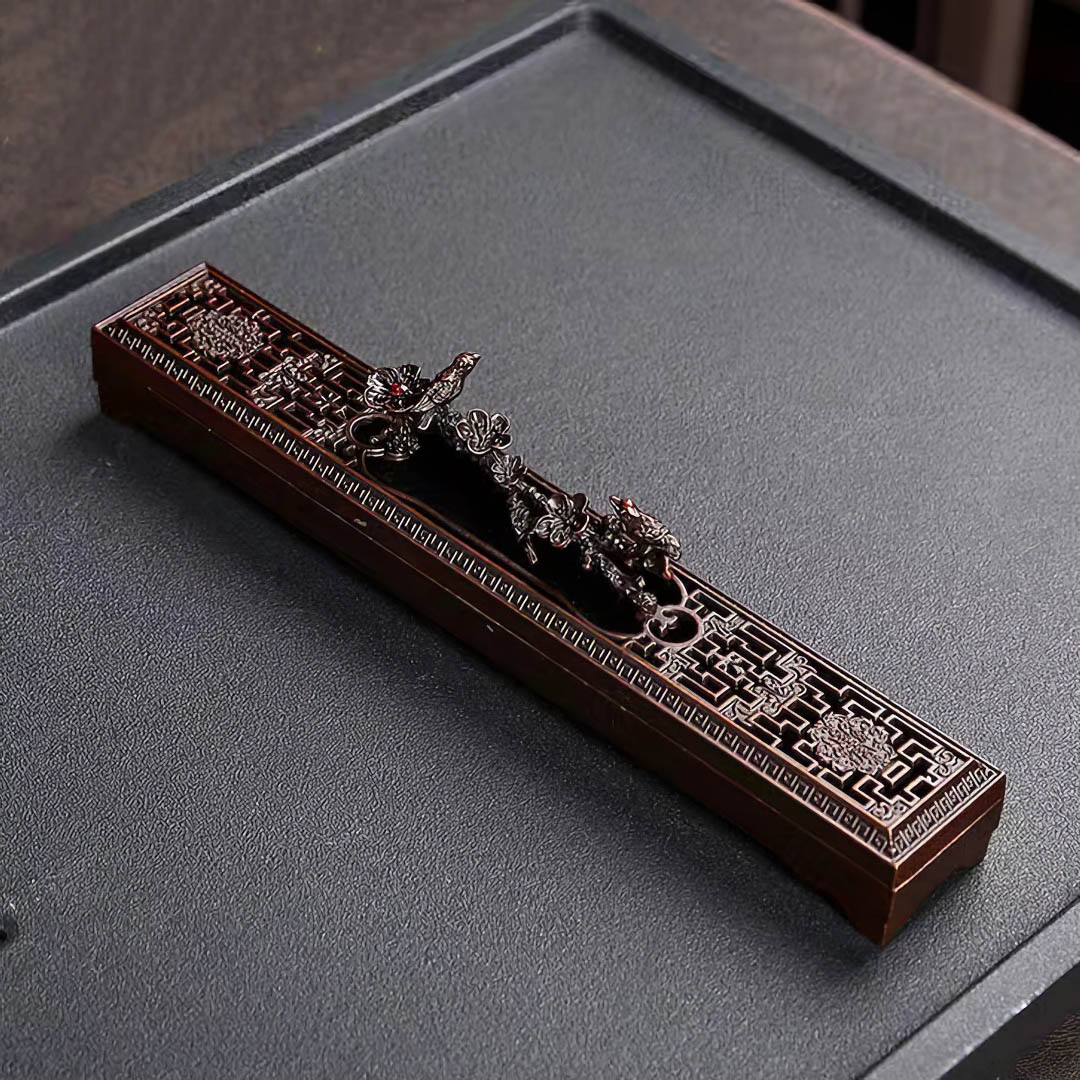 Металлическая курильница для аромапалочек.Украшена Цветущей Сливой, которая символизирует жизнелюбие, выносливость, возрождение жизни. Является одним из четырех благородных растений Китая.В комплекте огнеупорная подушечка.Материал: металл.Размеры: 22,5 х 3,5 х 5,5 см.Желаем вам благополучия! Читать полностью