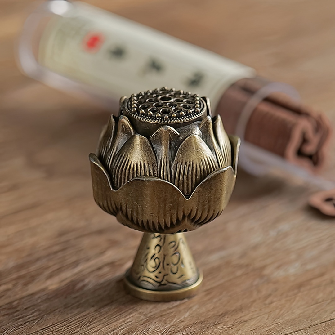 Металлическая курильница. Выполнена в виде Коробочки Лотоса. В Китае лотос символизирует чистоту, духовное раскрытие, мудрость.