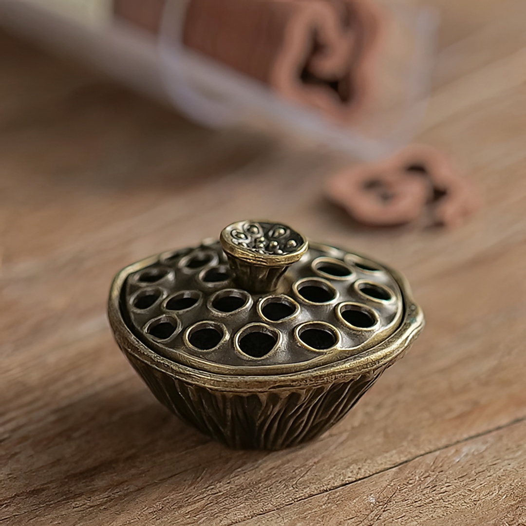 Металлическая курильница. Выполнена в виде Коробочки Лотоса. В Китае лотос символизирует чистоту, духовное раскрытие, мудрость.