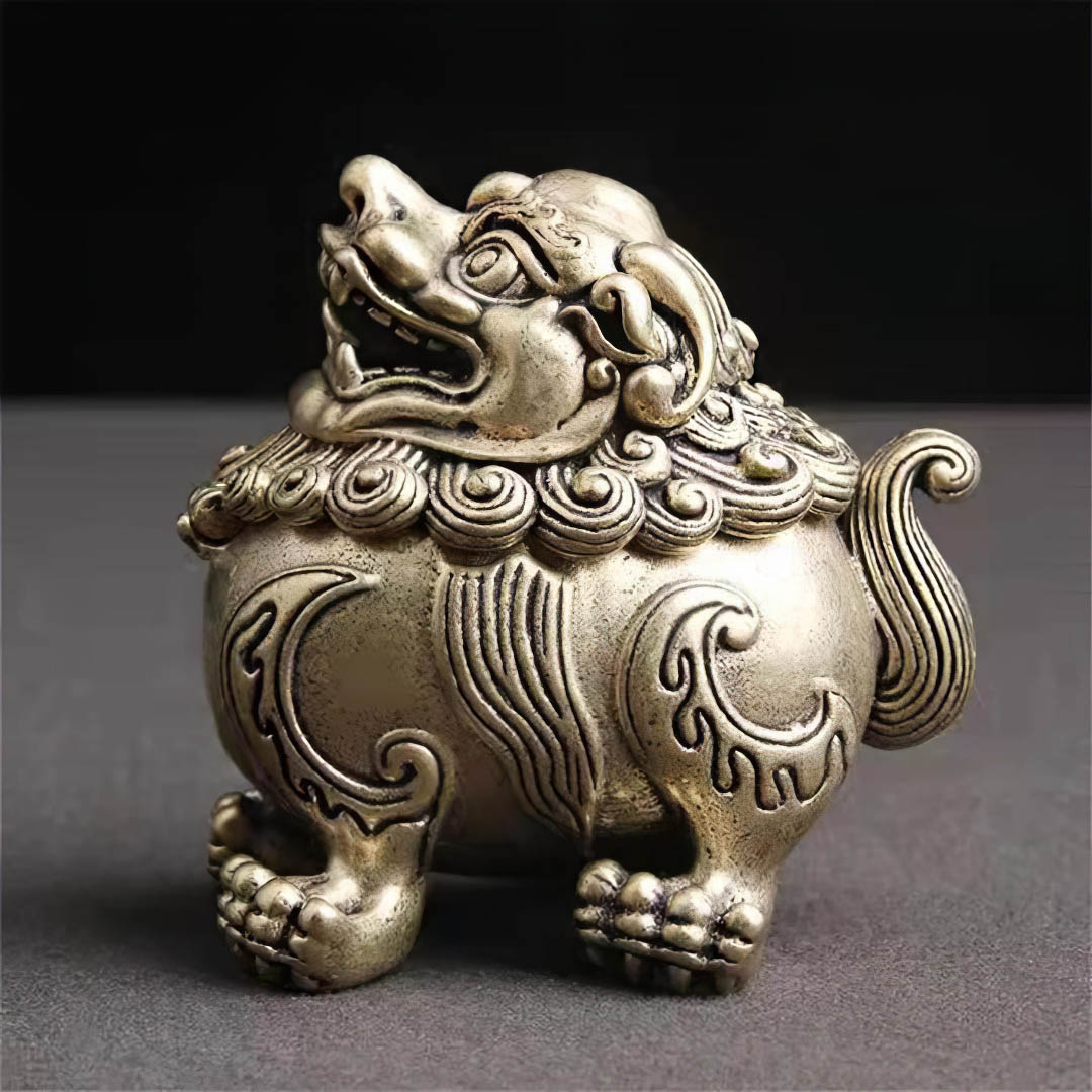 Металлическая курильница. Выполнена в виде Небесного Льва, он же "Собака Фу"- один из самых мощных и древних талисманов фен-шуй. Считается небесным львом Будды. Защищает дом от отрицательной энергии, злых людей, и негативных помыслов.