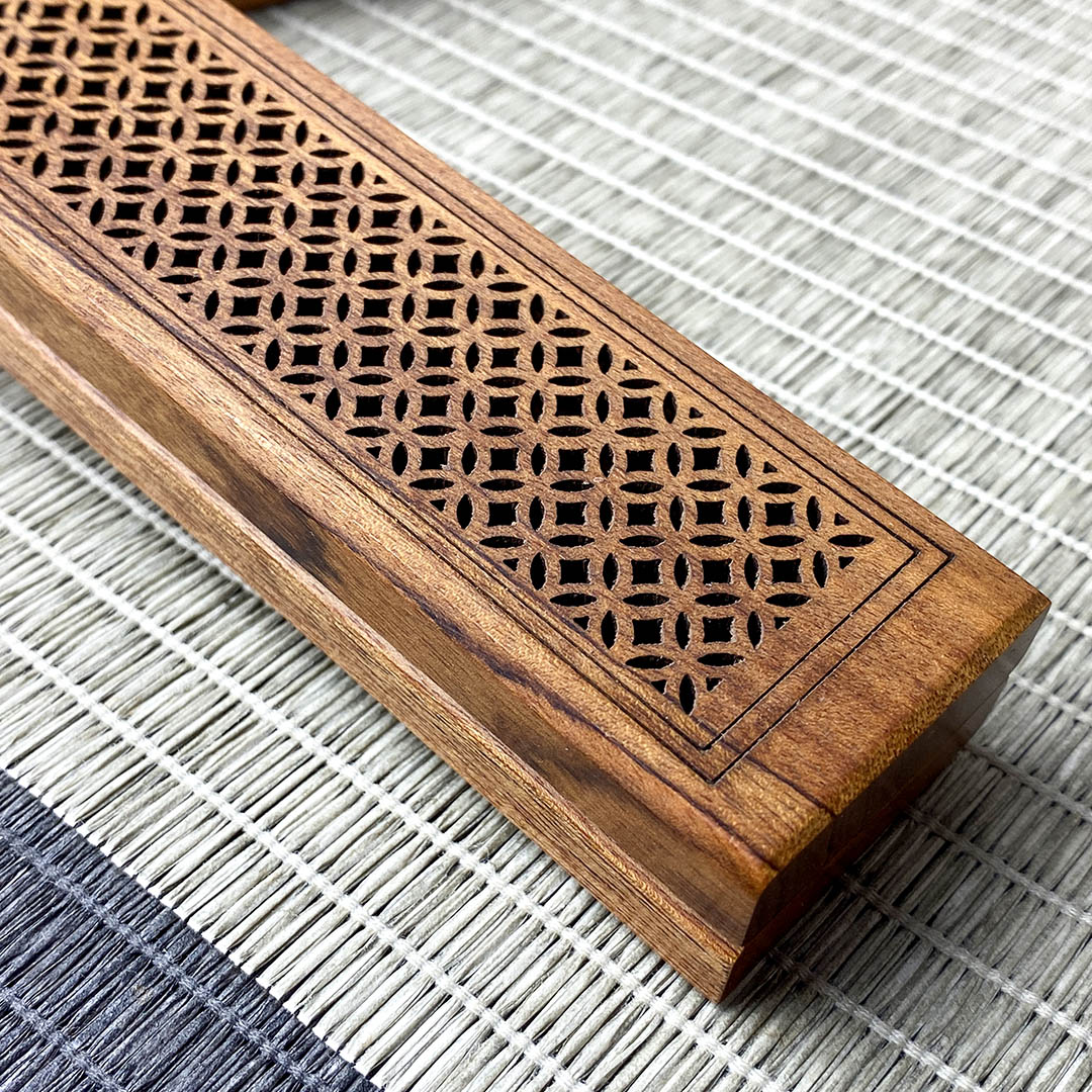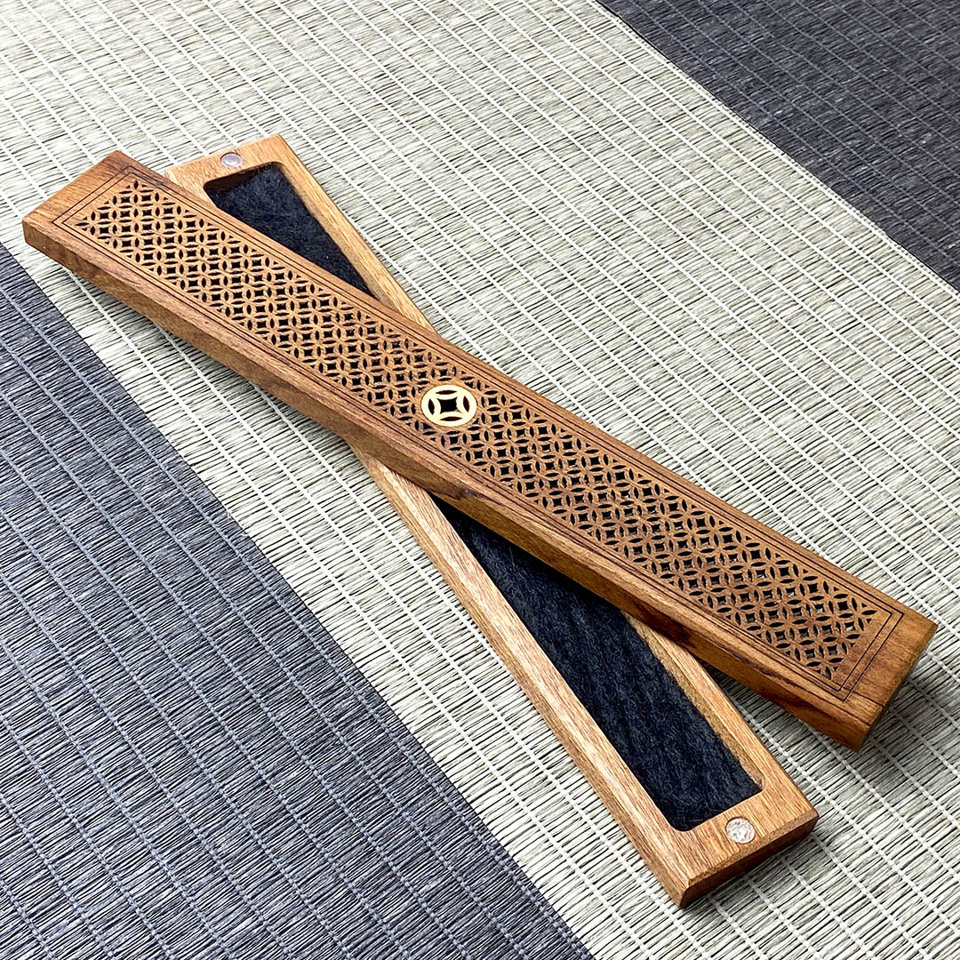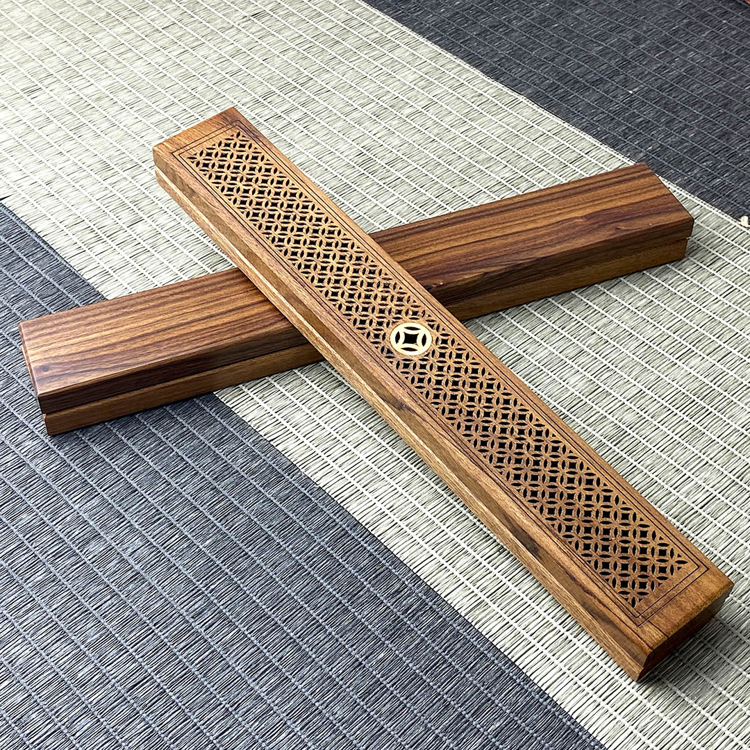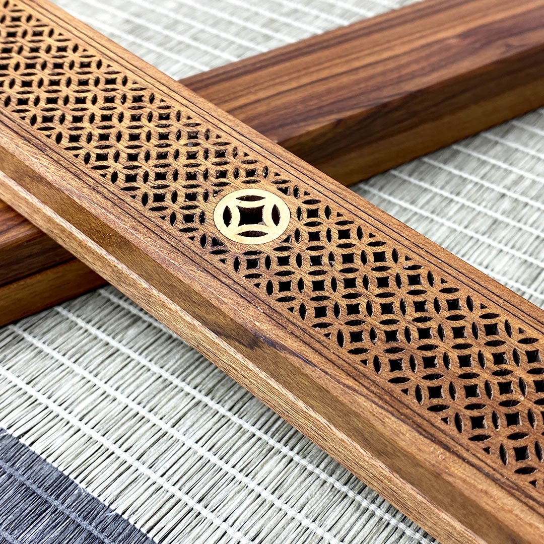 Курильница из дерева Палисандр для аромапалочек.Украшена красивой резьбой с изображением традиционной китайской монеты.В комплекте огнеупорная подушечка.Материал: дерево Палисандр.Размеры: 23,5 x 3,5 x 2 см.Желаем вам благополучия! Читать полностью