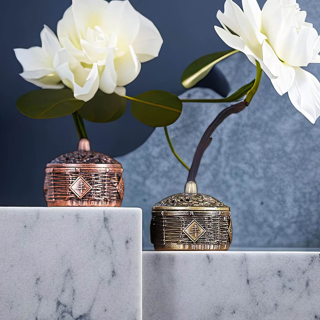 Металлическая курильница. Главная тема дизайна — «Пять злаков» (五谷丰登) — пожелание богатого урожая, изобилия и процветания.