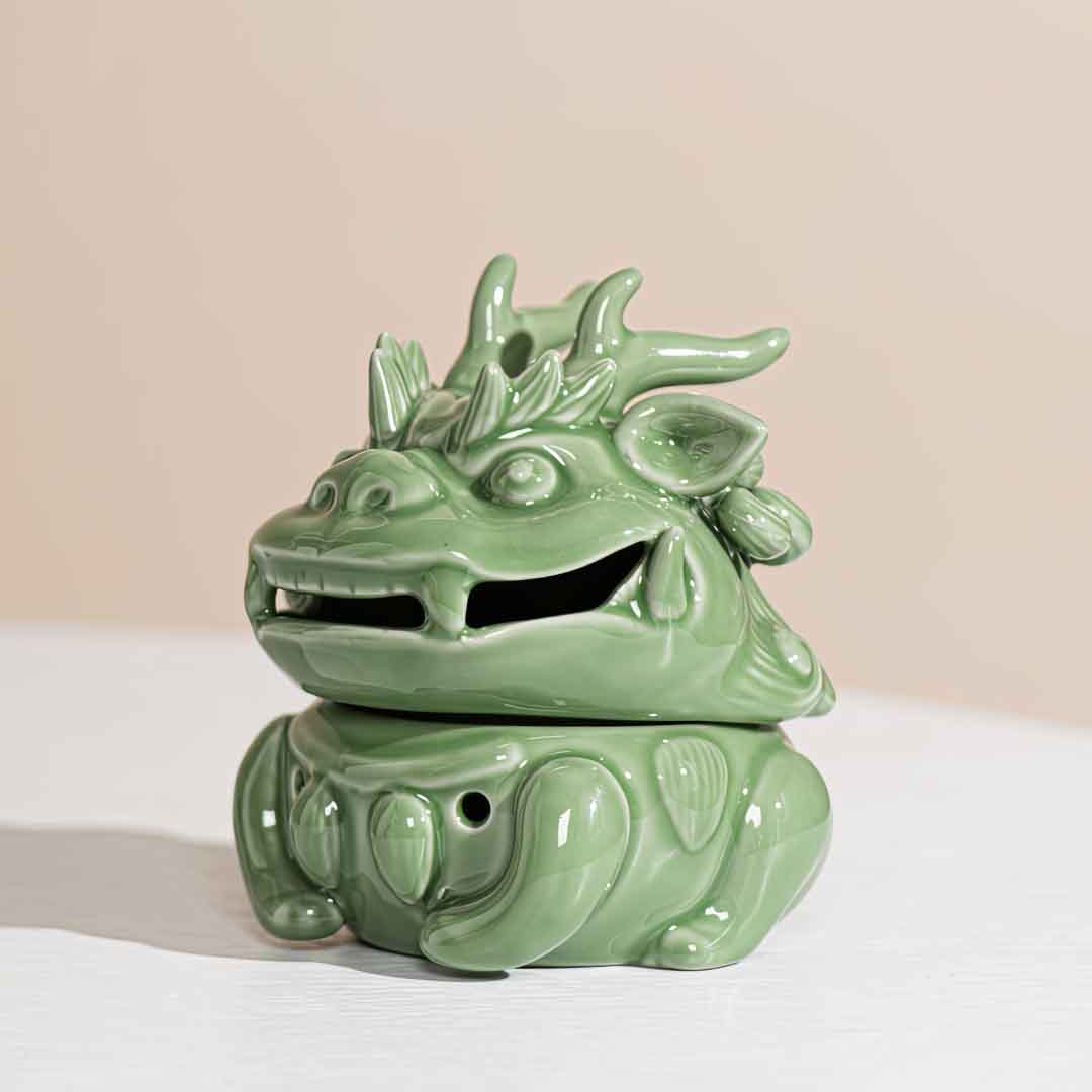 Керамическая курильница родом из Провинции Чжэцзян. Покрыта селадоновой глазурю. В китайской традиции эта глазурь известна как "Цинци" (青瓷), что переводится как "Зеленый фарфор". Она высоко ценима за свой мягкий, приятный зеленый цвет, напоминающий нефрит. Секреты создания селадоновой глазури были тщательно охраняемы и передавались из поколения в поколение.