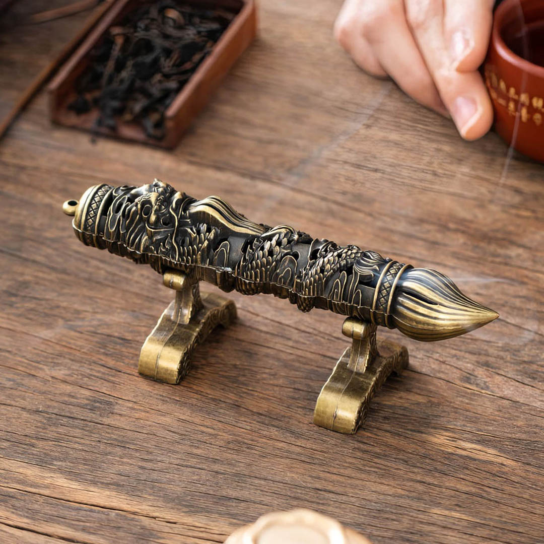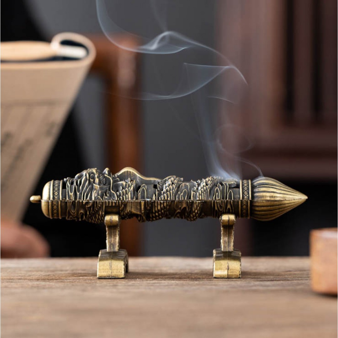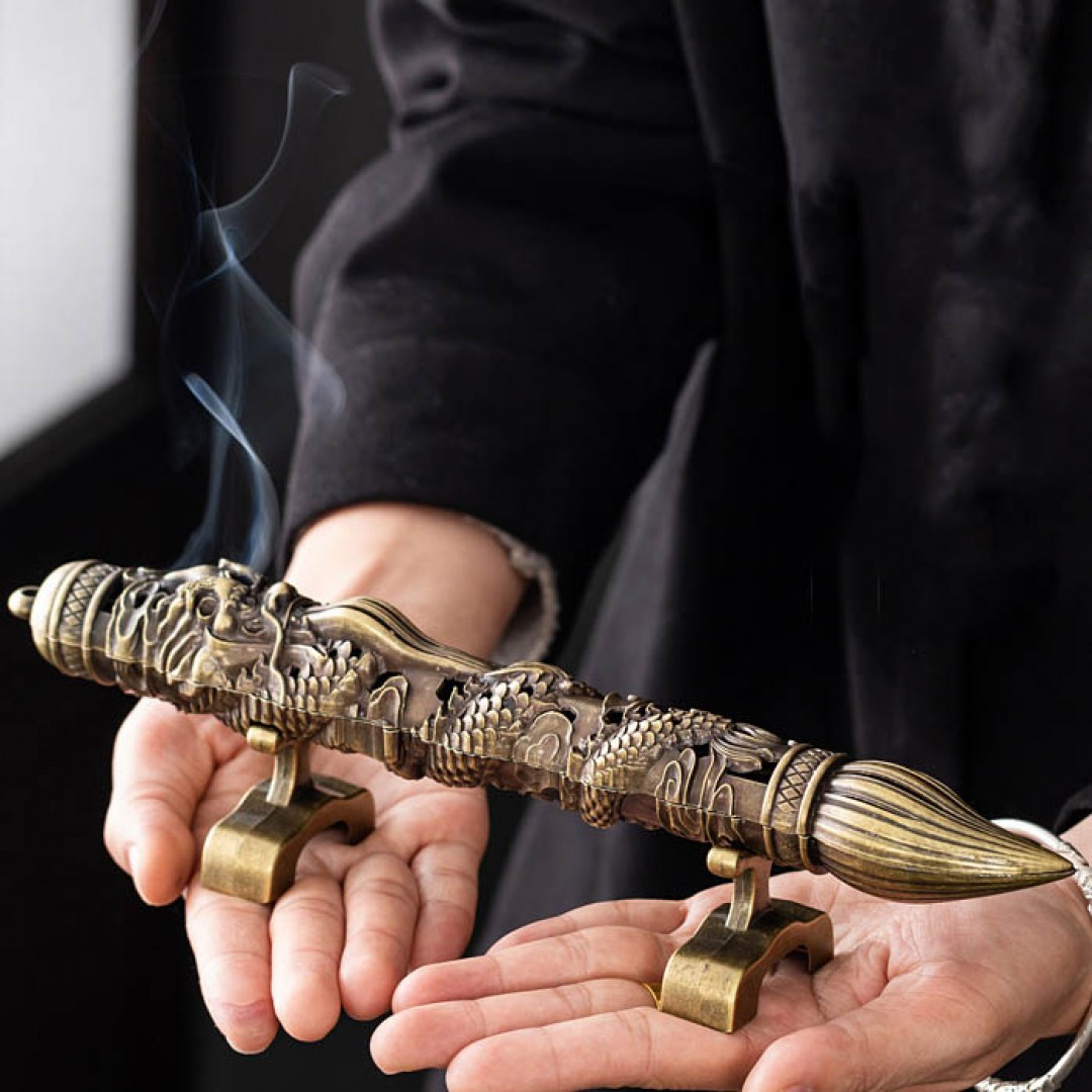 Металлическая курильница.Украшена изображением Дракона, летящего в облаках и извергающего пламя — это архетипическая картина достижения наивысшего успеха, могущества и реализации.В комплекте огнеупорная подушечка.Материал: металл.Размеры: 15 х 4,5 х 5,5 см.Желаем вам благополучия! Читать полностью