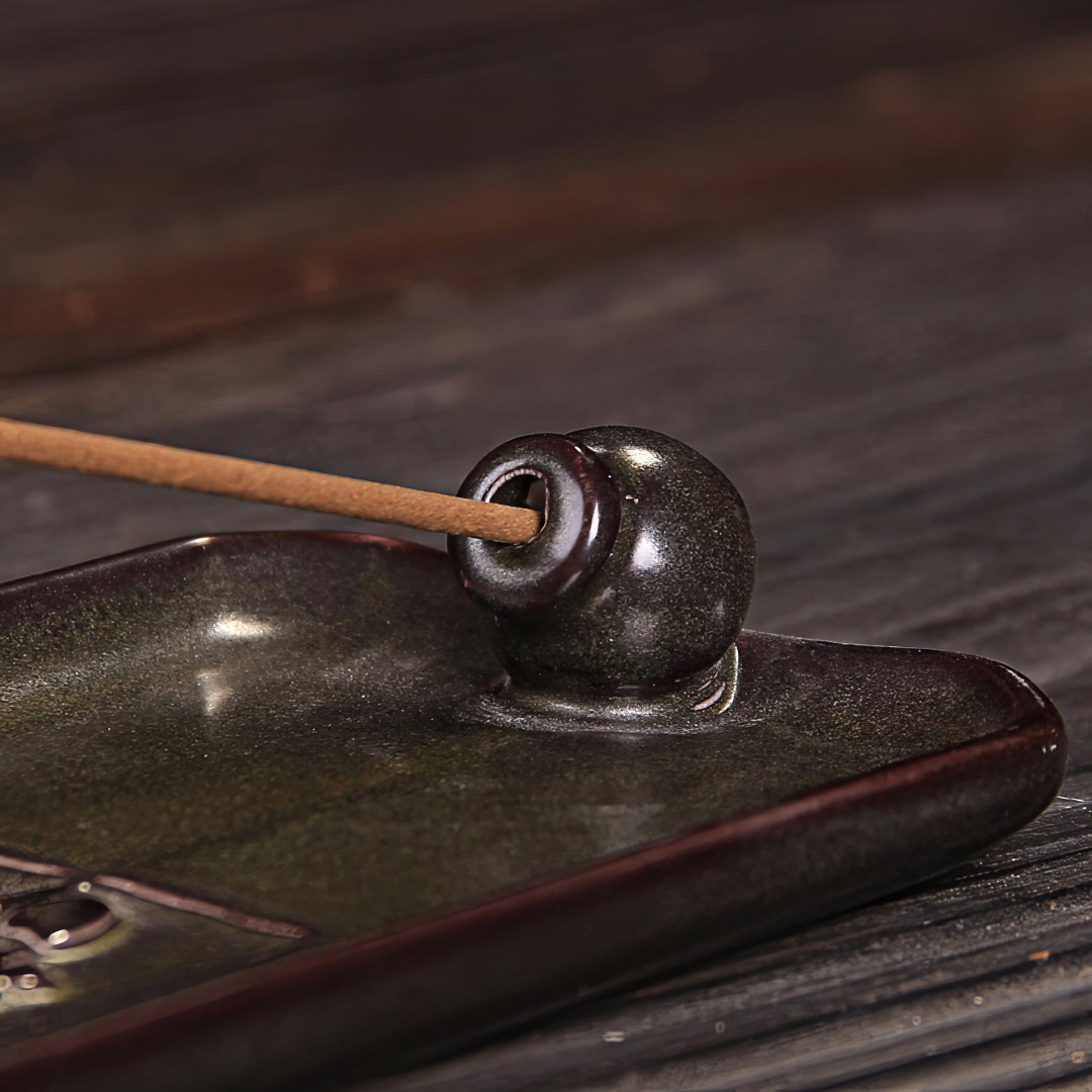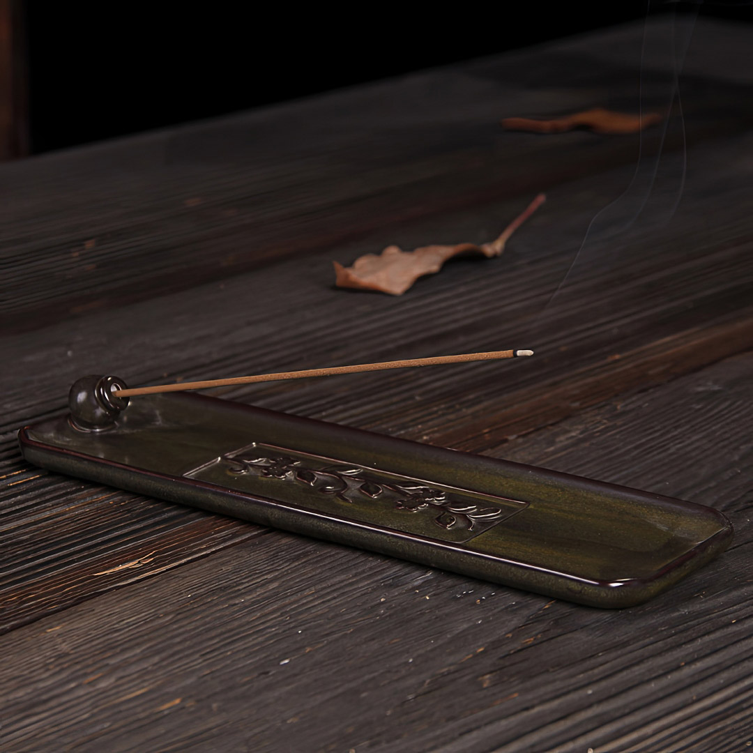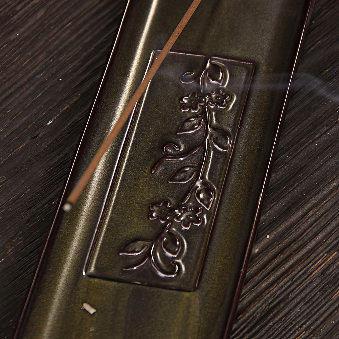 Керамическая подставка для аромапалочек. Палочка вставляется в горшочек на краю подставки. Украшена рельефным изображением Орхидеи – олицетворение весны, чистоты помыслов и благородства.