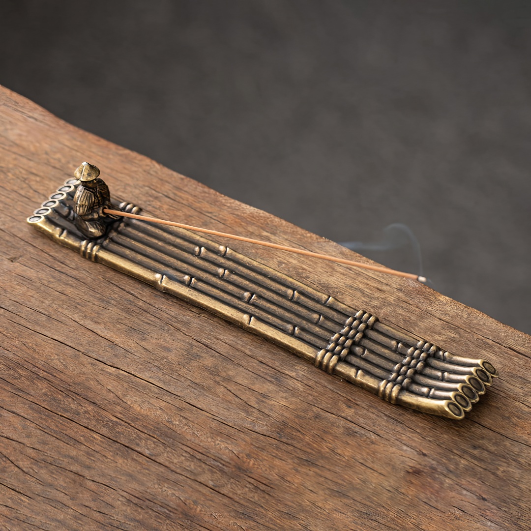 Металлическая подставка для аромапалочек. Выполнена в виде Бамбукового Плота, на котором расположился Рыбак.
