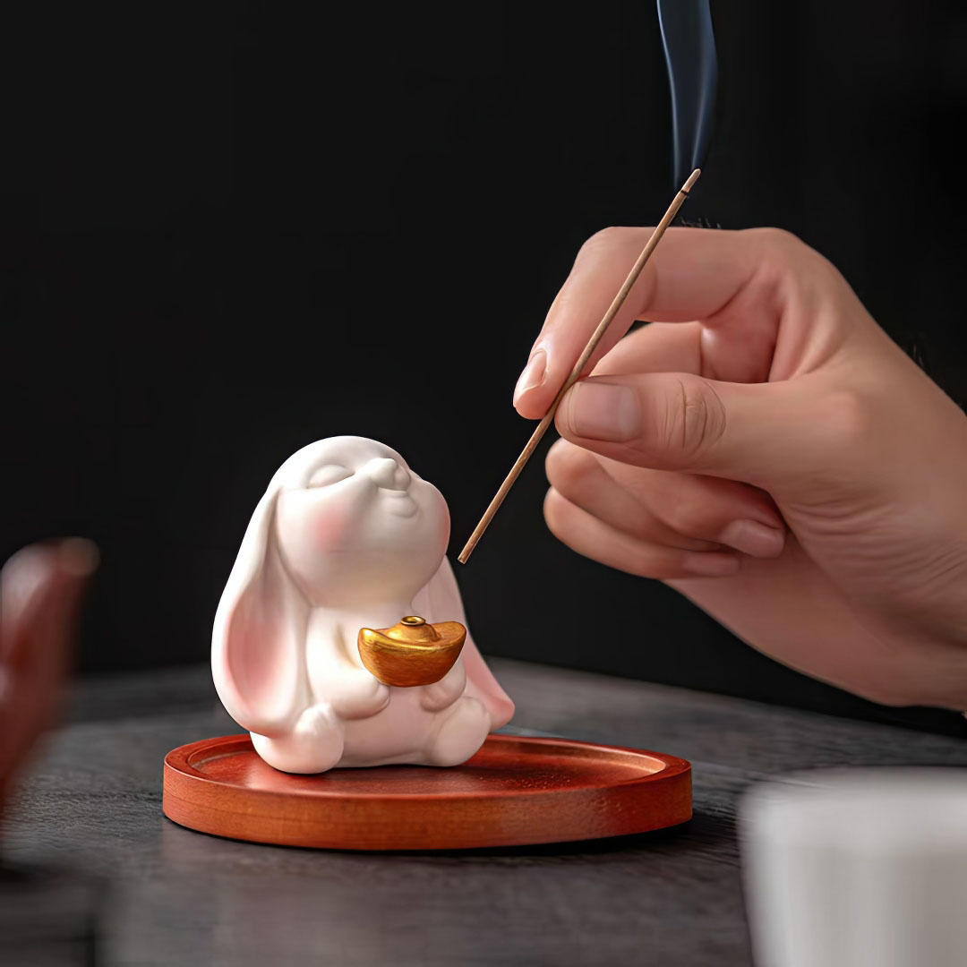 Подставка для Аромапалочек "Кролик со Слитком Золота"