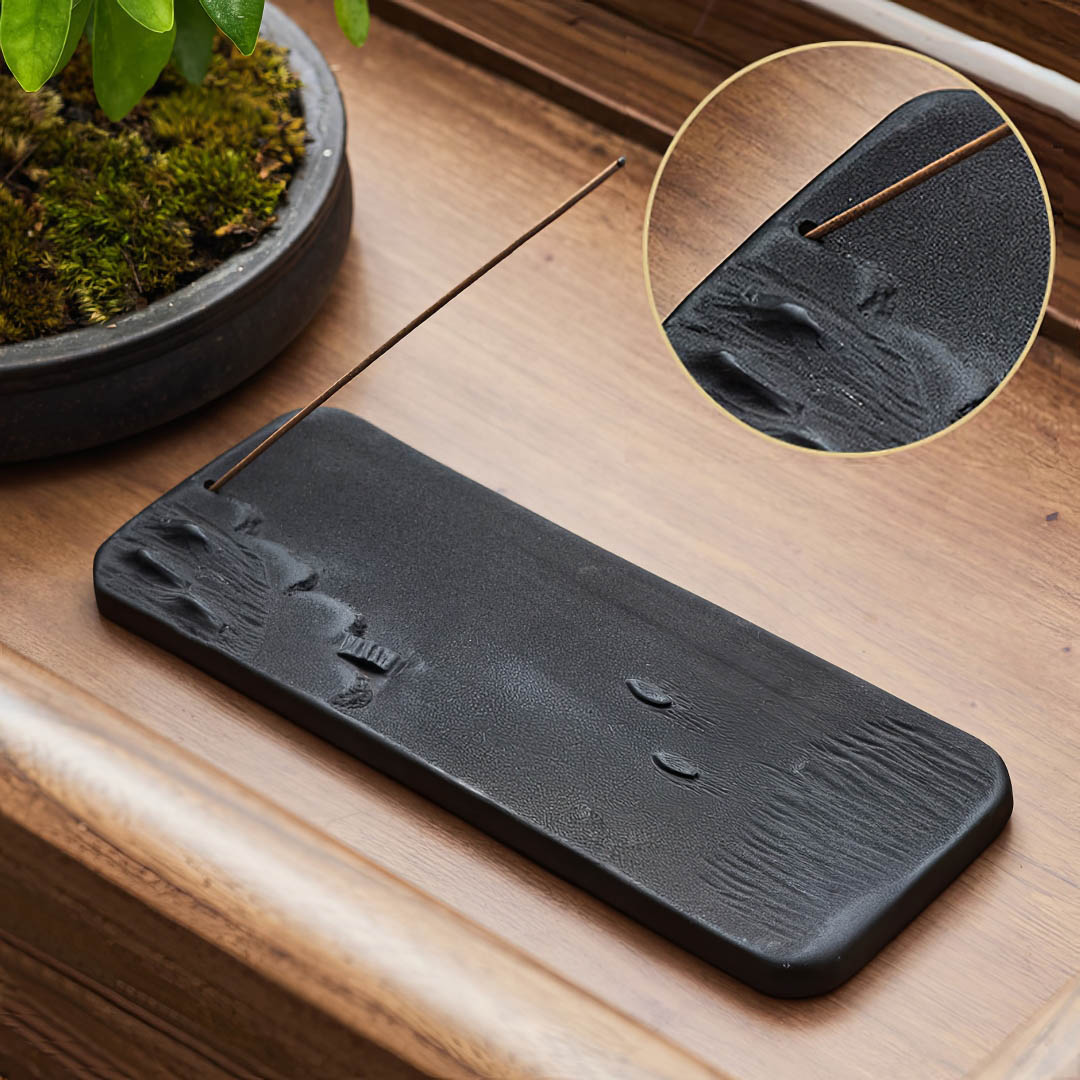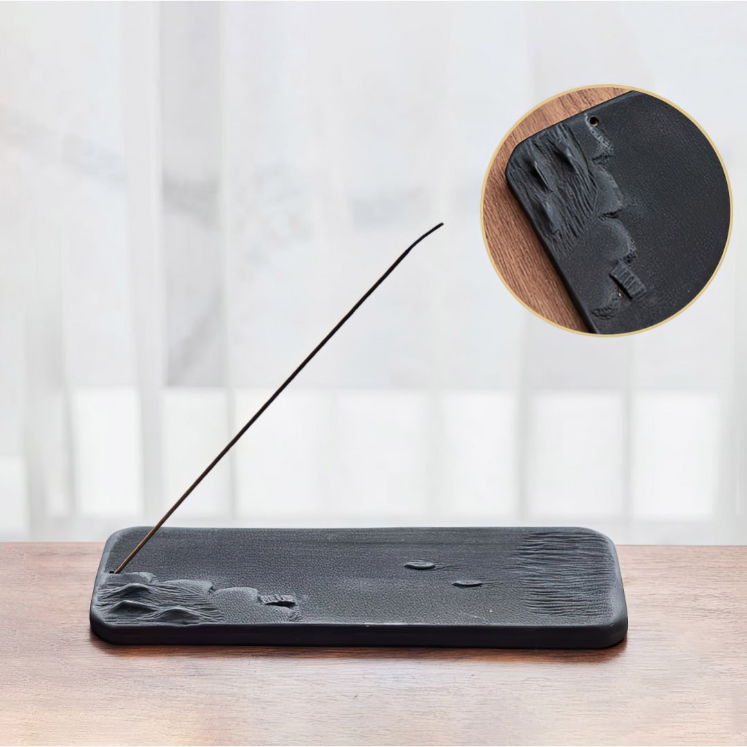 Керамическая подставка для аромапалочек. Темная, матовая, поверхность слегка текстурированная, с мягкой шероховатостью, приятной на ощупь.