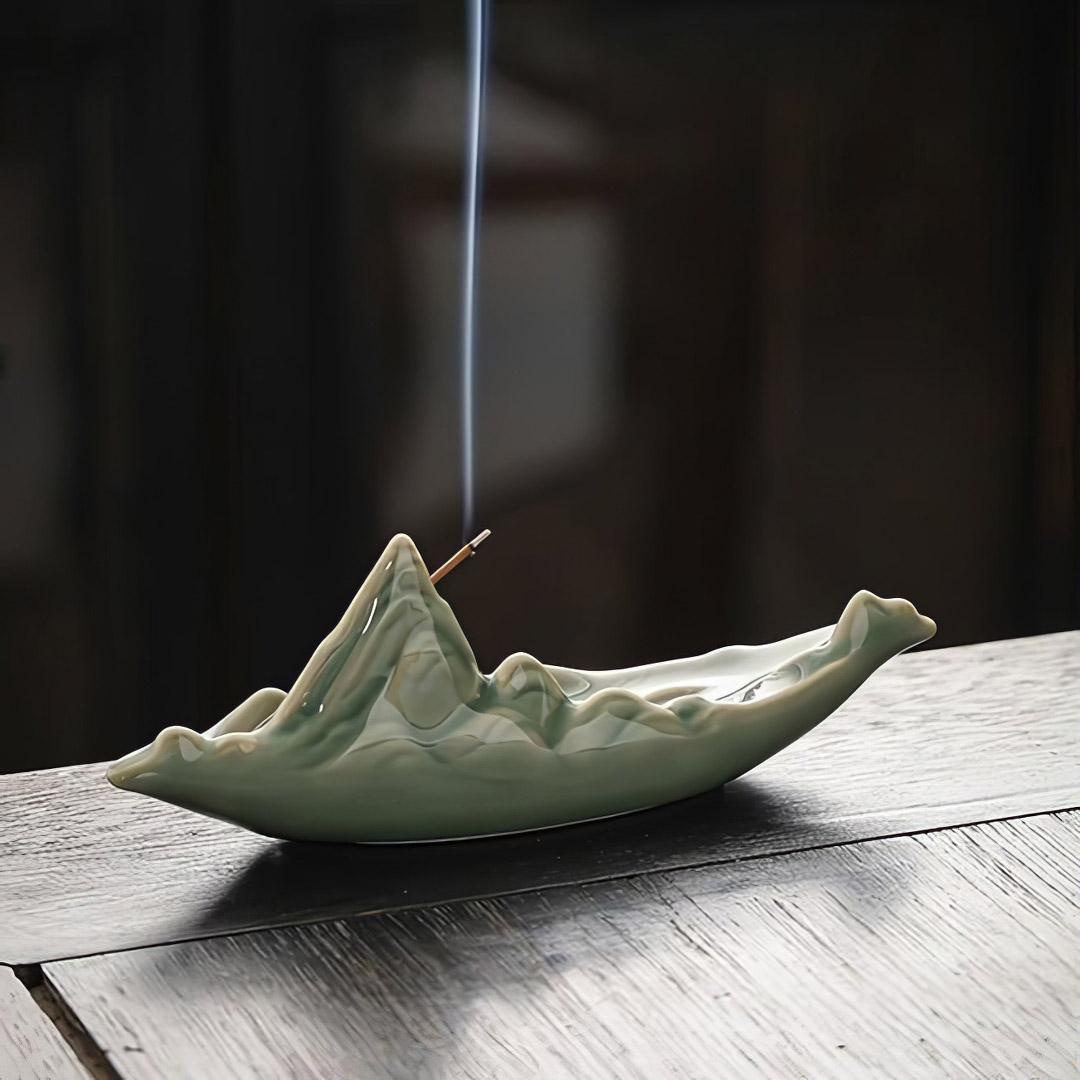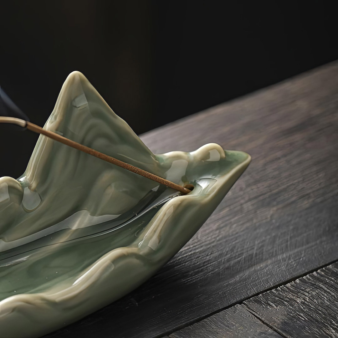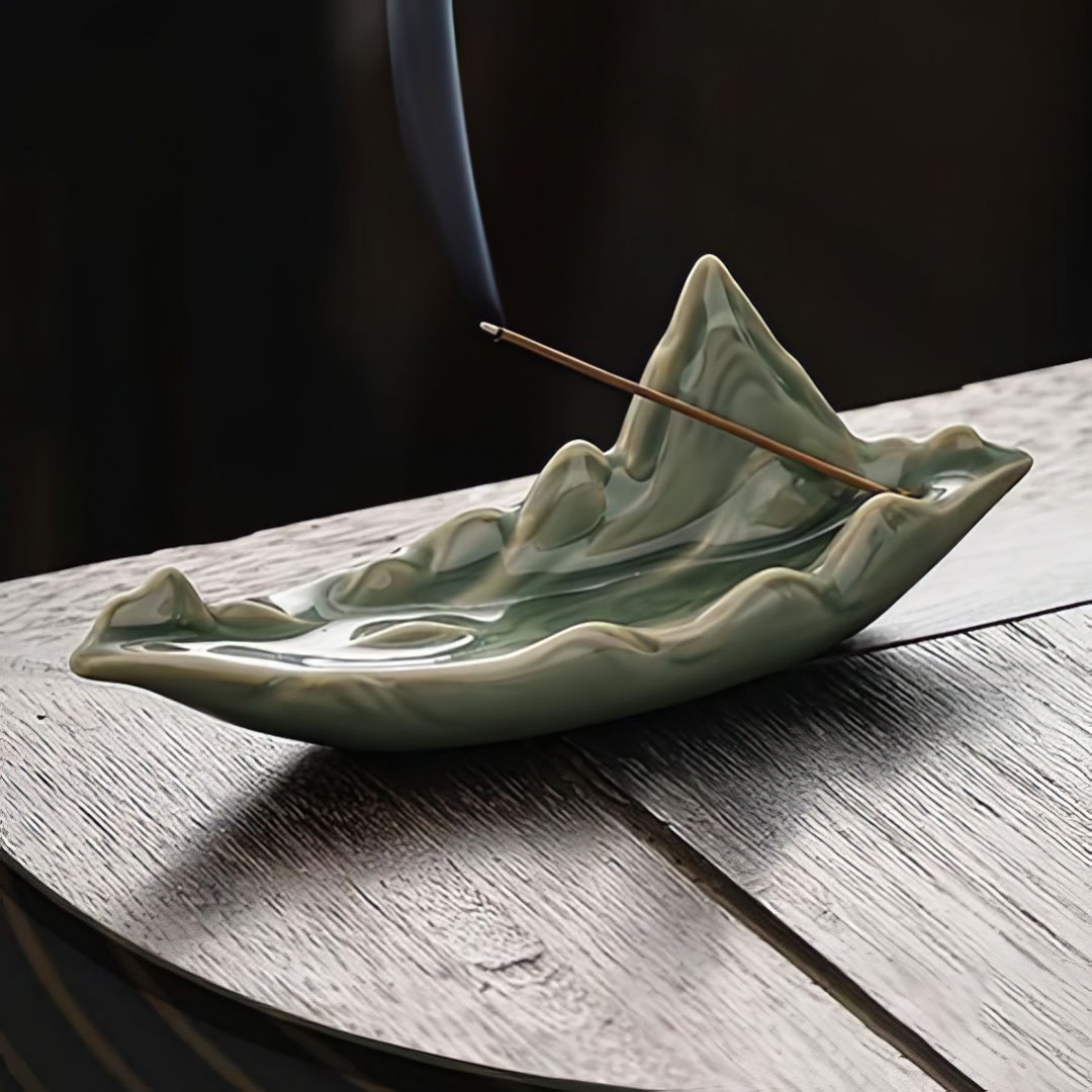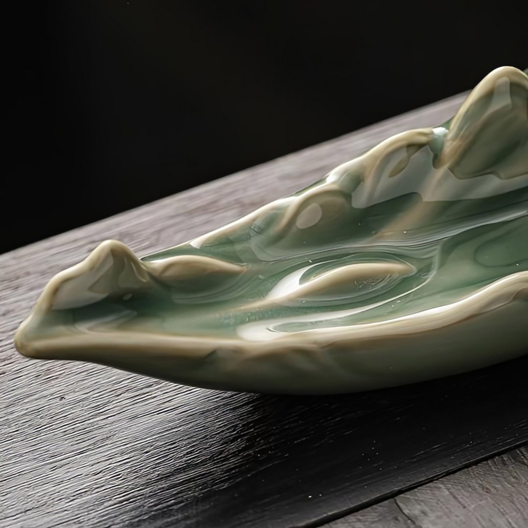 Керамическая подставка для аромапалочек. Покрыта селадоновой глазурю. В китайской традиции эта глазурь известна как "Цинци" (青瓷), что переводится как "Зеленый фарфор". Она высоко ценима за свой мягкий, приятный зеленый цвет, напоминающий нефрит. Секреты создания селадоновой глазури были тщательно охраняемы и передавались из поколения в поколение.