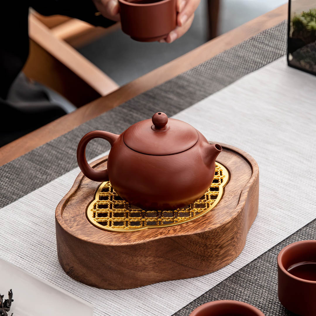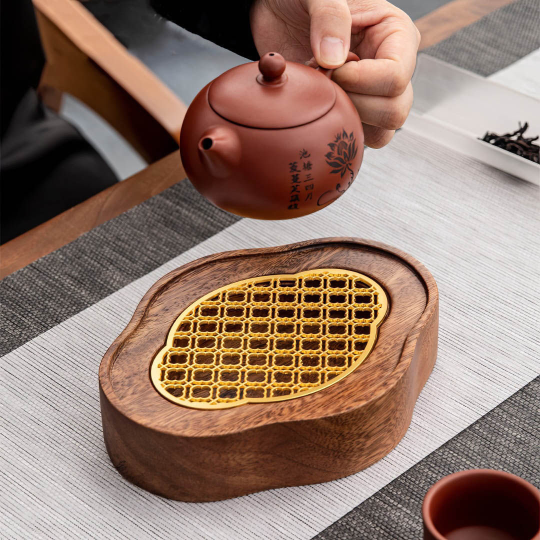 Маленькая деревянная чабань для чайных церемоний. С ней ваш чайник будет чувствовать себя как на троне во время чаепития! Выполнена в форме, отсылающей к традиционному изображению облака в Китае.