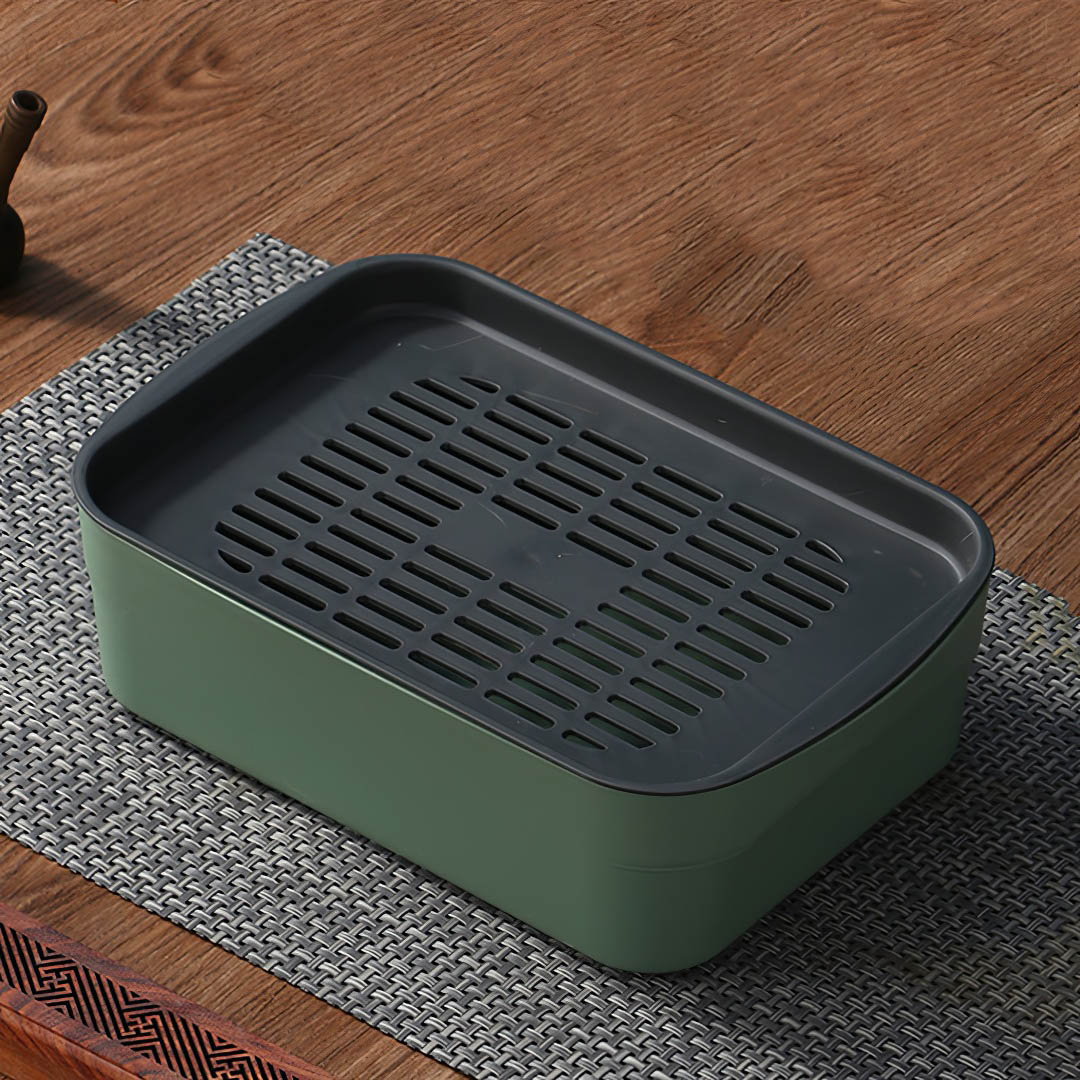 Пластиковая чабань, отличный вариант для офиса, в машину или же на природу. Пластиковая чабань не будет изнашиваться, в отличии от бамбуковой или деревянной, а также ей не нужен вовсе никакой уход. Вместительный поддон может служить переноской или местом хранения для посуды.Материал: пластик.Размеры: 28х18х8 см.Приятного Чаепития! Читать полностью
