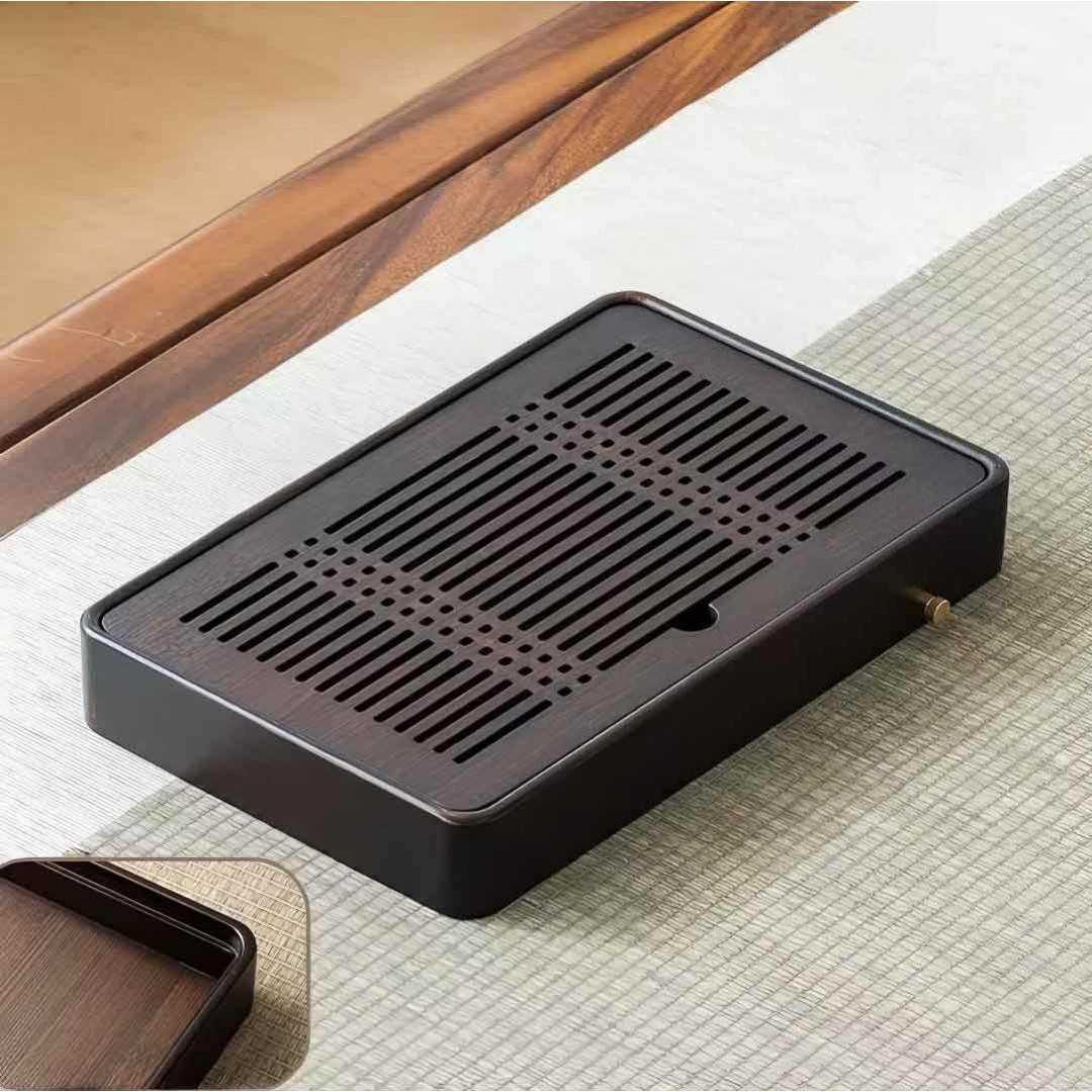 Бамбуковая чабань. В поддоне предусмотрен слив, заглушка присутствует. Верхняя панель - съемная.