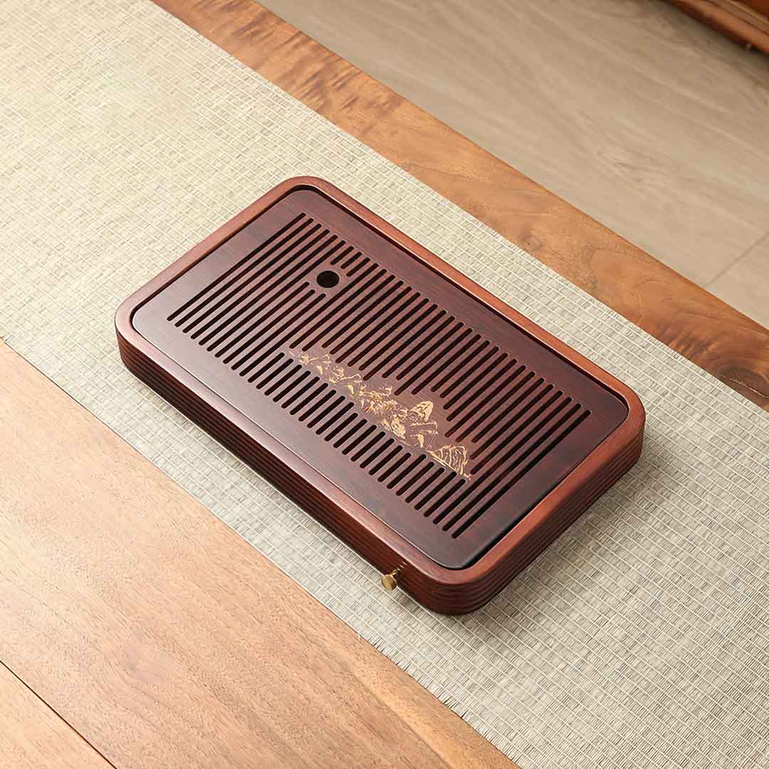 Бамбуковая чабань. В поддоне предусмотрен слив, заглушка присутствует. Верхняя панель - съемная.