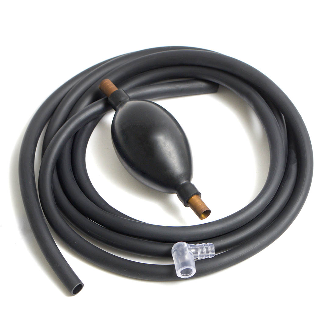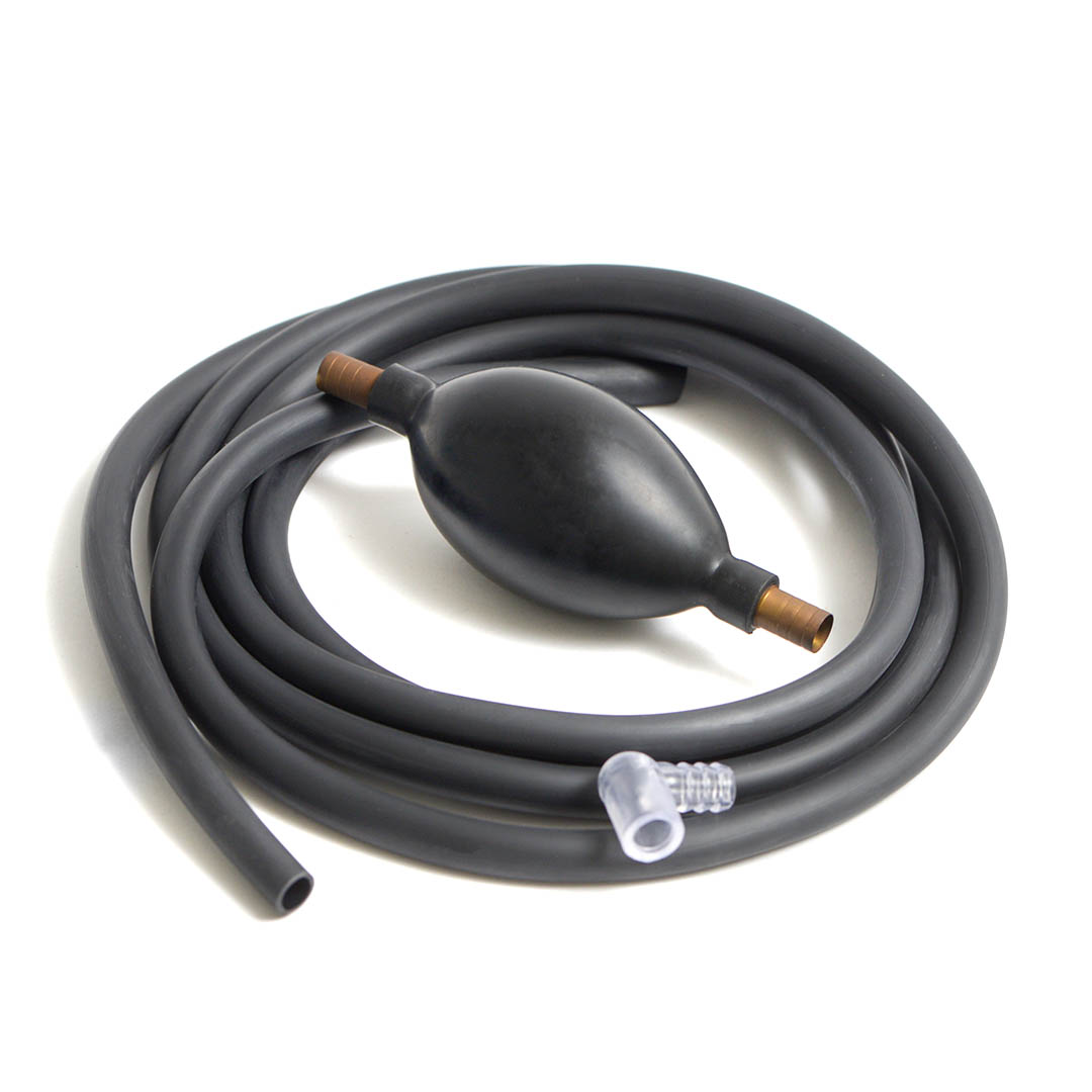 Принцип работы — механический: достаточно сжать грушу несколько раз, чтобы создать вакуум и начать движение воды по шлангу.