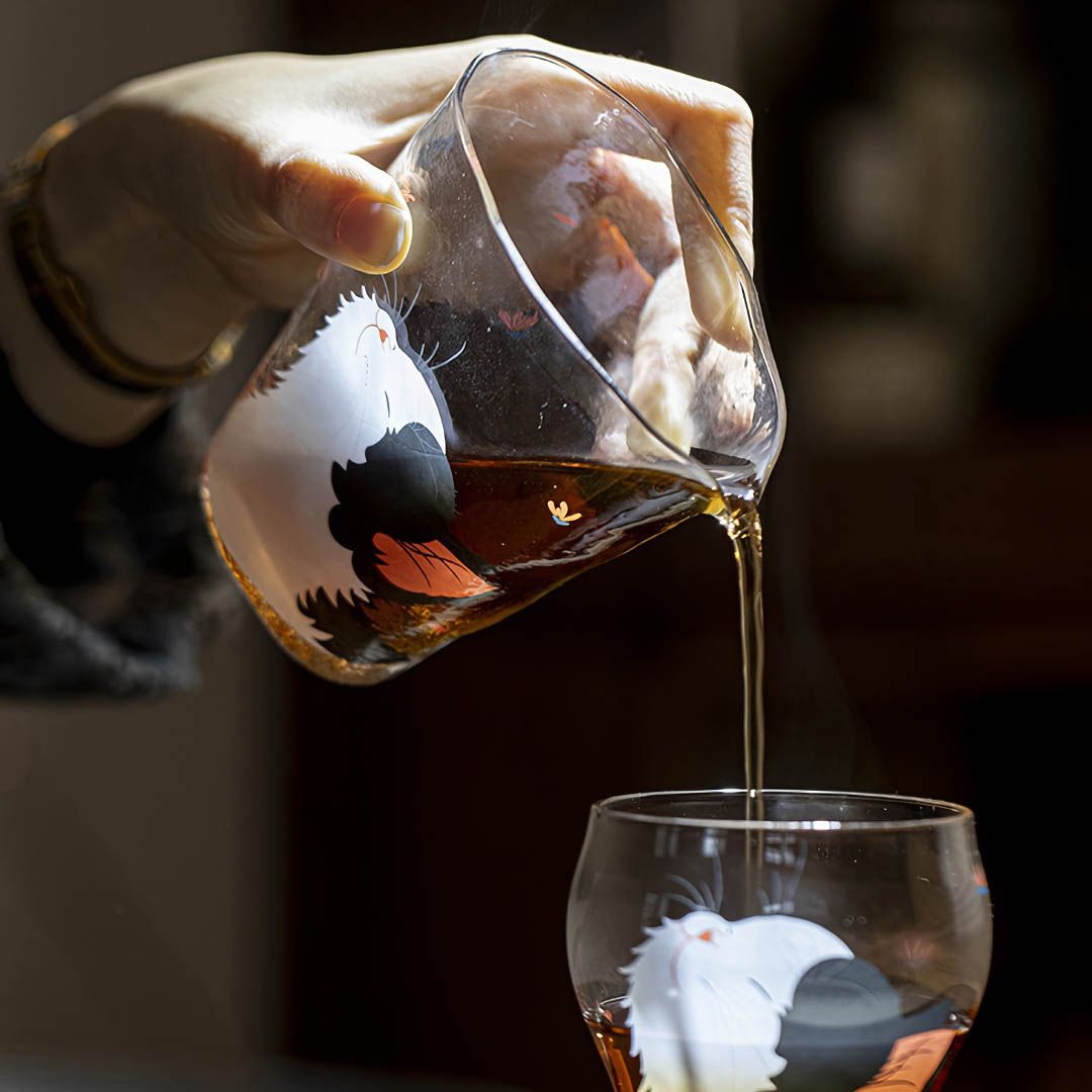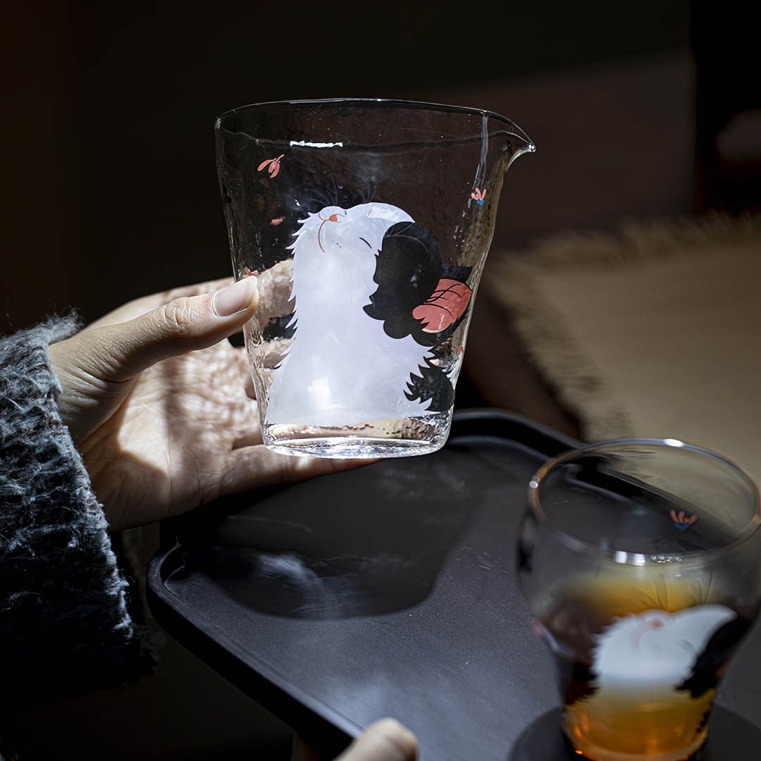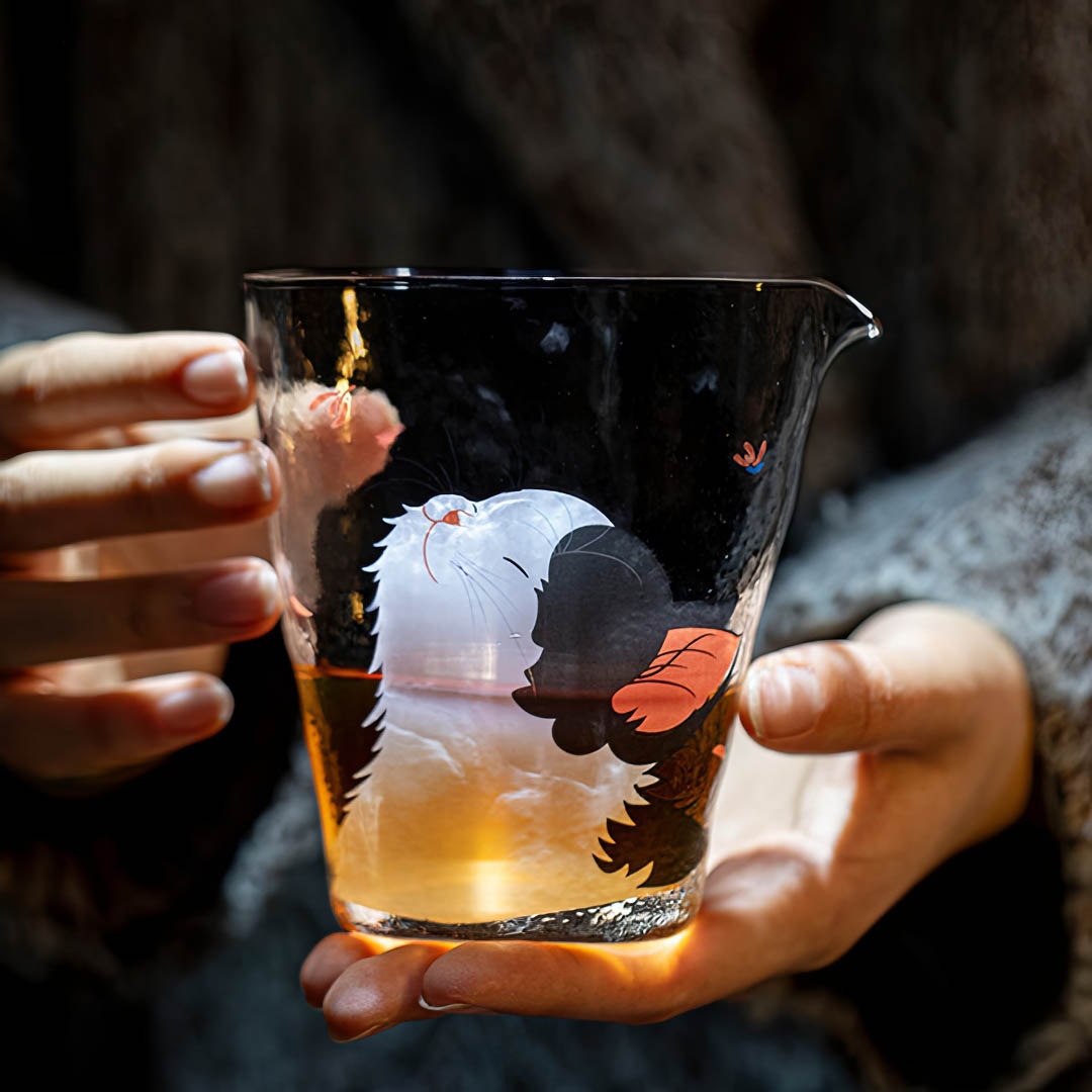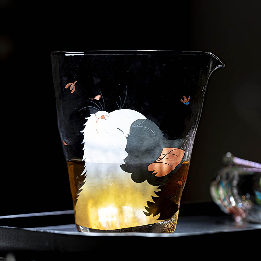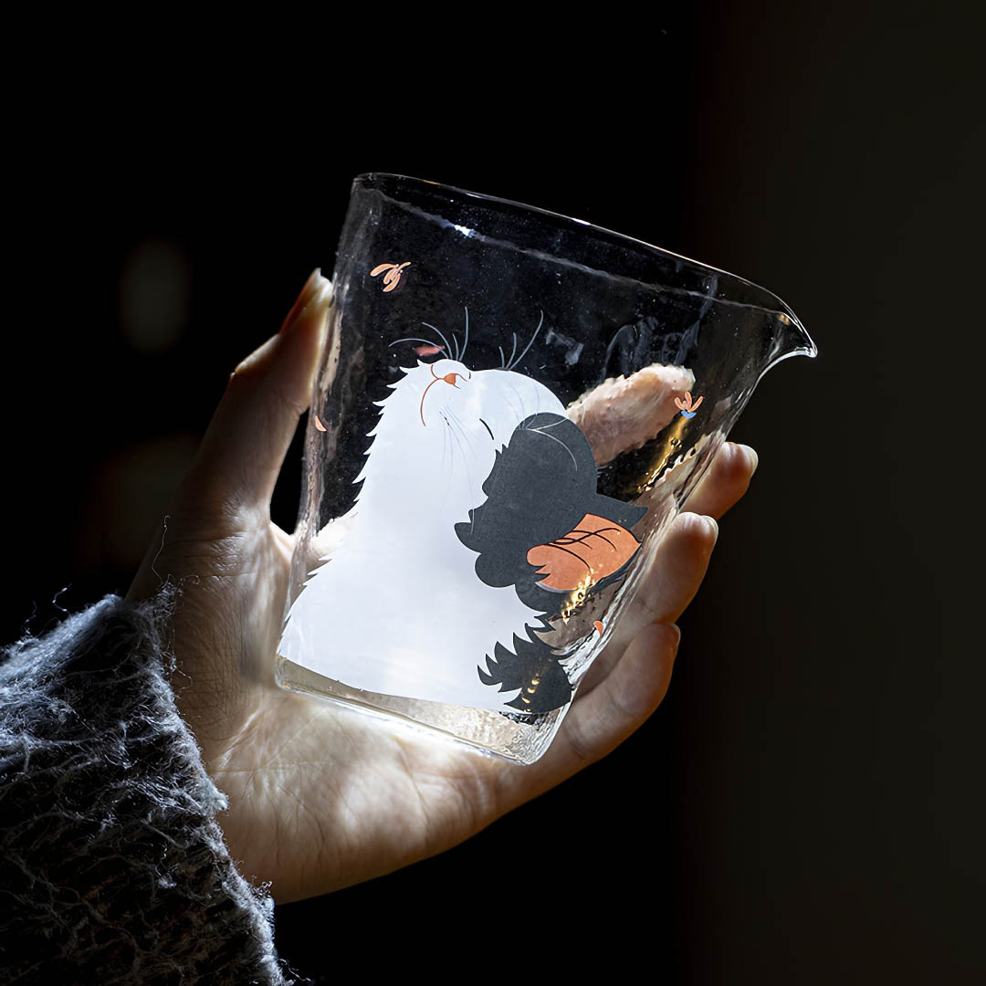 Чахай, так же именуемый - Чаша Справедливости из термостойкого стекла.Стенки средней толщины. Украшен дизайном «Ди Бань Мао Цюй» – Бабочка сопровождает забавного кота.Материал: термостойкое стекло.Объем: 280 мл.Приятного чаепития! Читать полностью