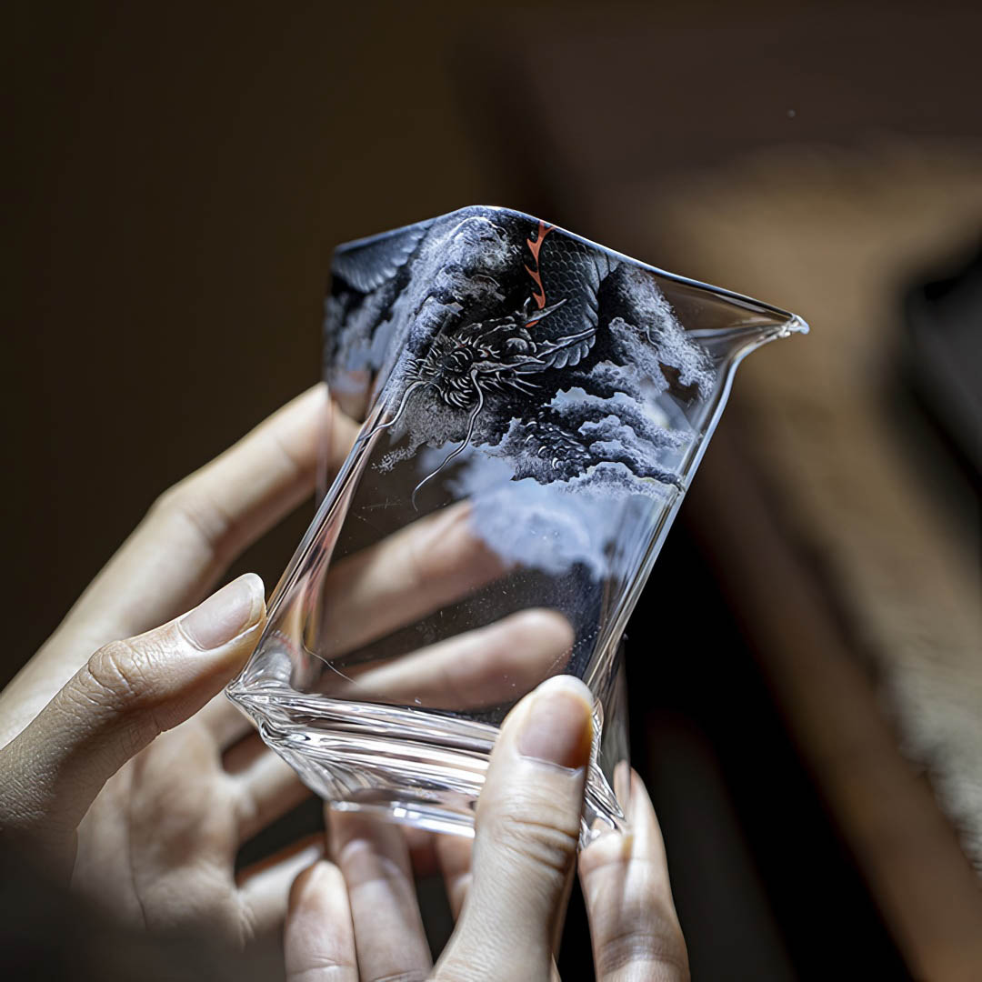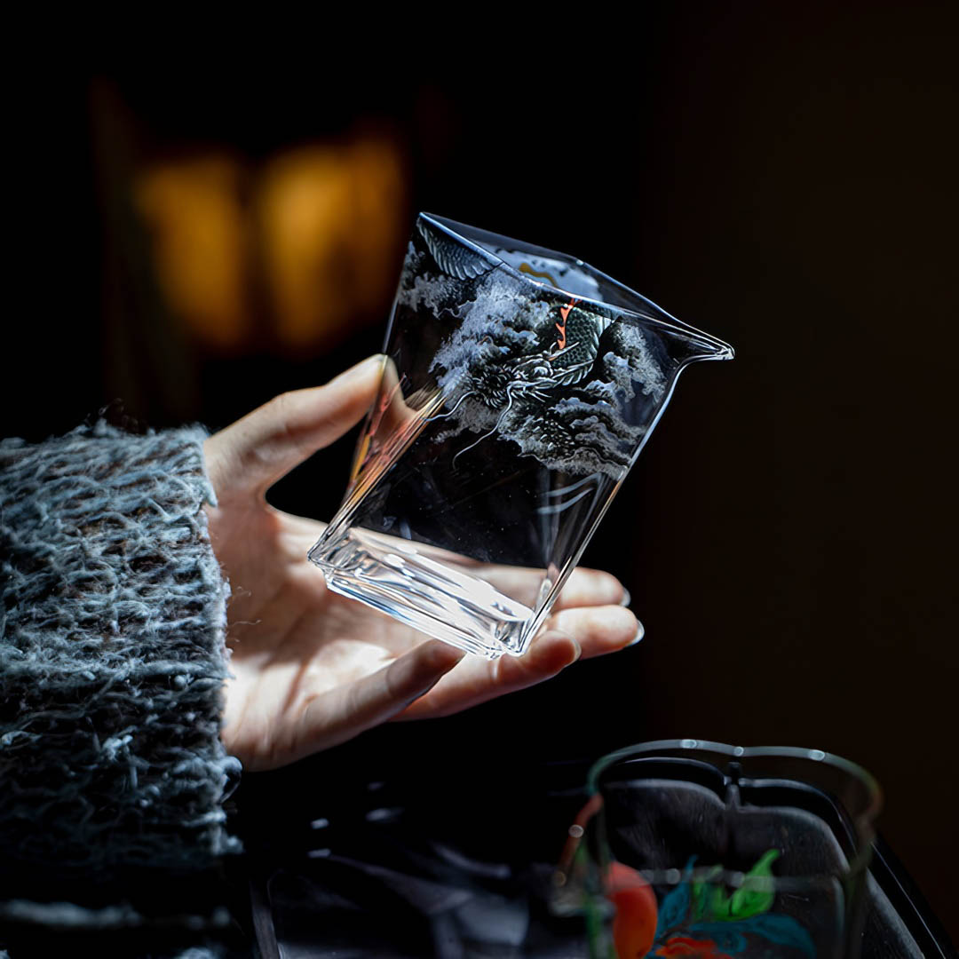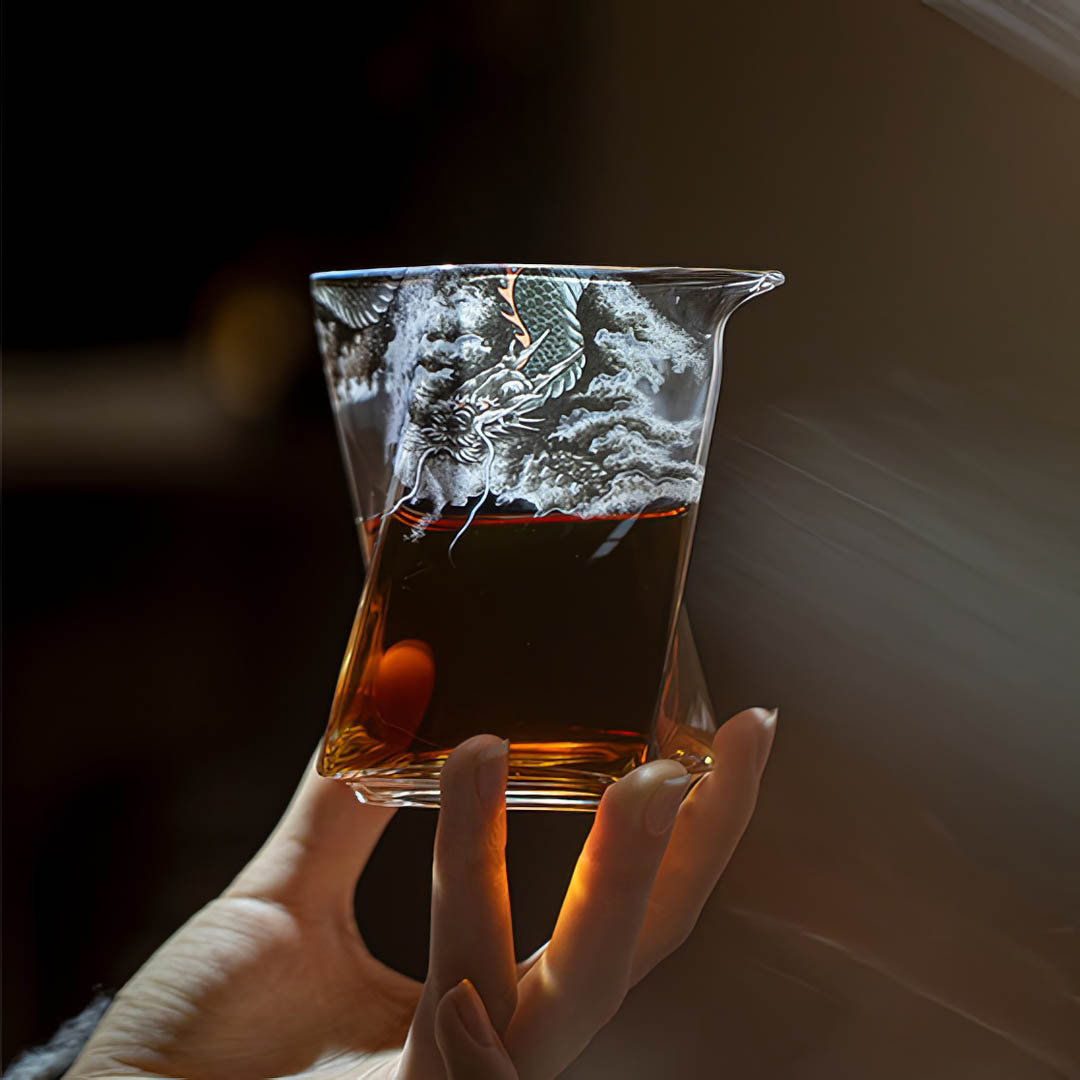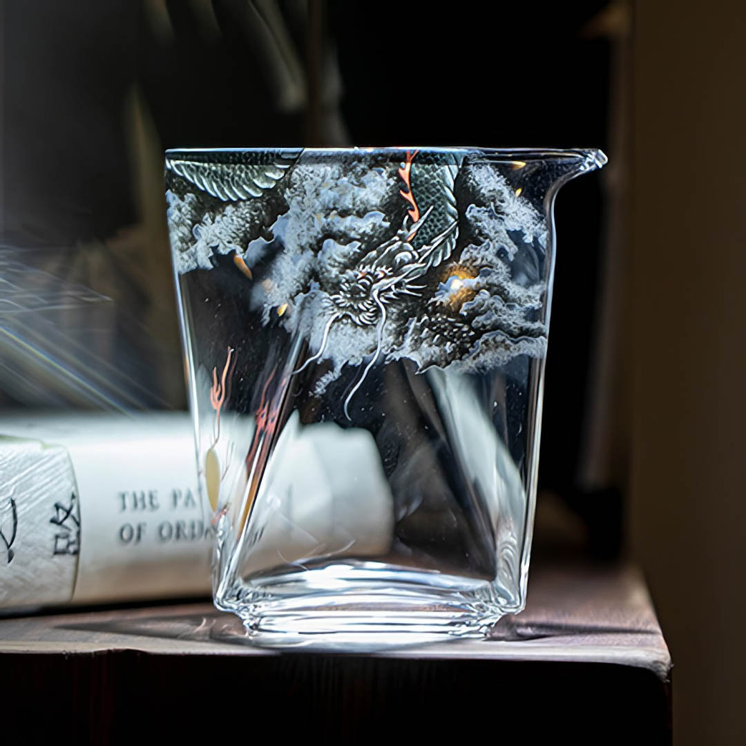 Чахай, так же именуемый - Чаша Справедливости из термостойкого стекла.Стенки тоньше средних. Украшен изображением Дракона, летящего в облаках. Это символ воплощения активного мужского начала Ян, знак императора. Несмотря на объем, очень легкая, стенки тоньше средних. Кромка донышка позолочена. На обратной стороне пиалы иероглифы, обозначающие фразу "Начало начал".Материал: термостойкое стекло.Объем: 260 мл.Приятного чаепития! Читать полностью