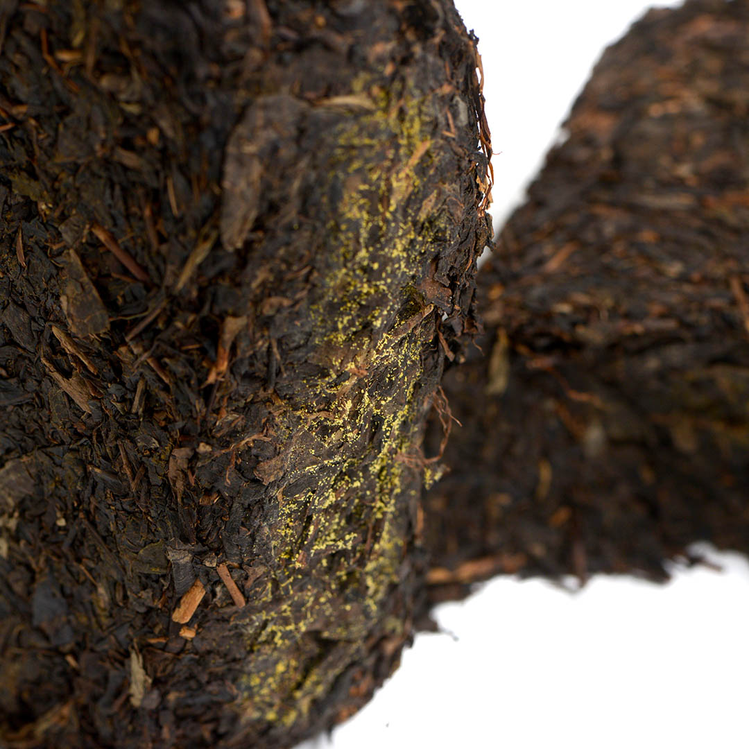 Хэй Ча — это особый вид ферментированного чая, который проходит такие этапы обработки, как остановка окисления, скручивание, ферментация с использованием тепла и влаги (водуй), а затем сушка. Один из важных микробов, участвующих в ферментации, — Eurotium Cristatum, или Цзинь Хуа, — образует золотистые колонии на листьях, придающие напитку особую пользу и аромат.