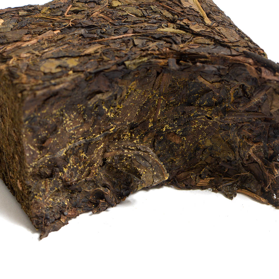 Хэй Ча — это особый вид ферментированного чая, который проходит такие этапы обработки, как остановка окисления, скручивание, ферментация с использованием тепла и влаги (водуй), а затем сушка. Один из важных микробов, участвующих в ферментации, — Eurotium Cristatum, или Цзинь Хуа, — образует золотистые колонии на листьях, придающие напитку особую пользу и аромат.