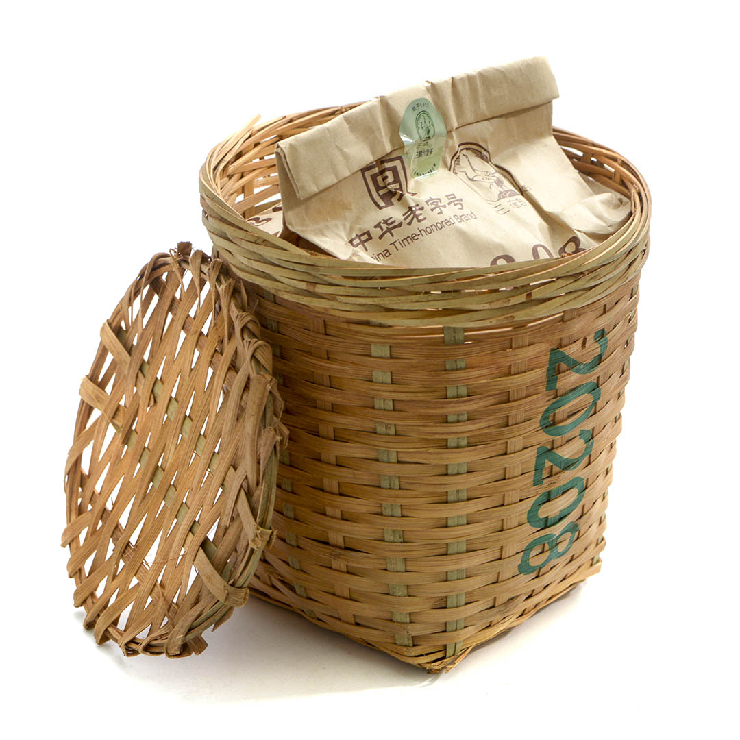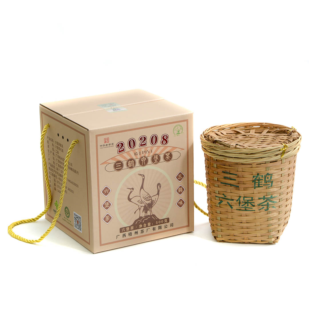 Лю Бао «20208 Три Журавля» в формате традиционной пеньковой корзины 500 грамм. Происхождение: провинция Гуанси.
