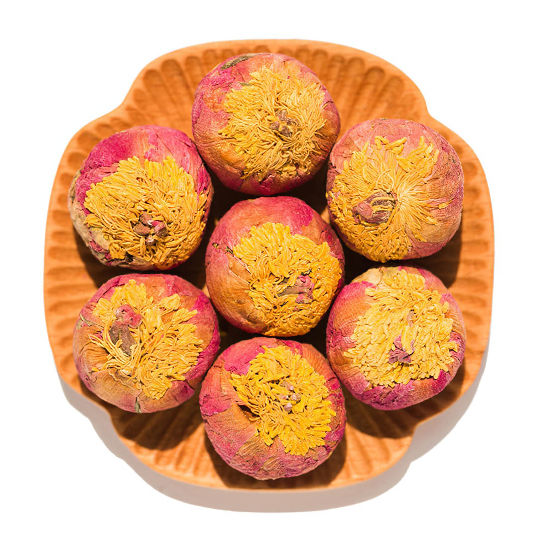Цветочный чай, названный, благодаря своей форме, “Жемчужина Дракона”. Можно использовать как для заваривания, так и для создания композиций цветов и чая.