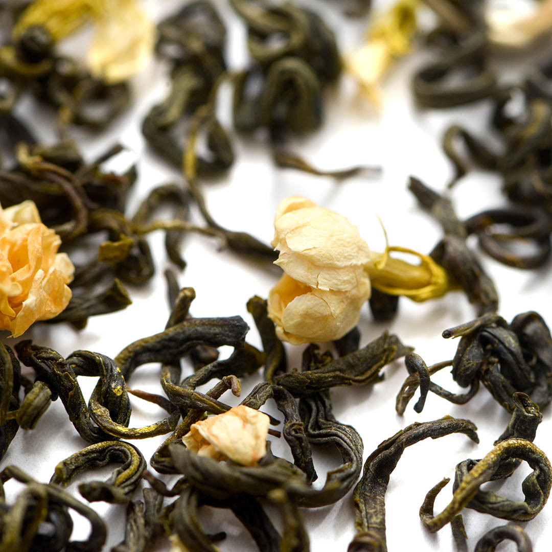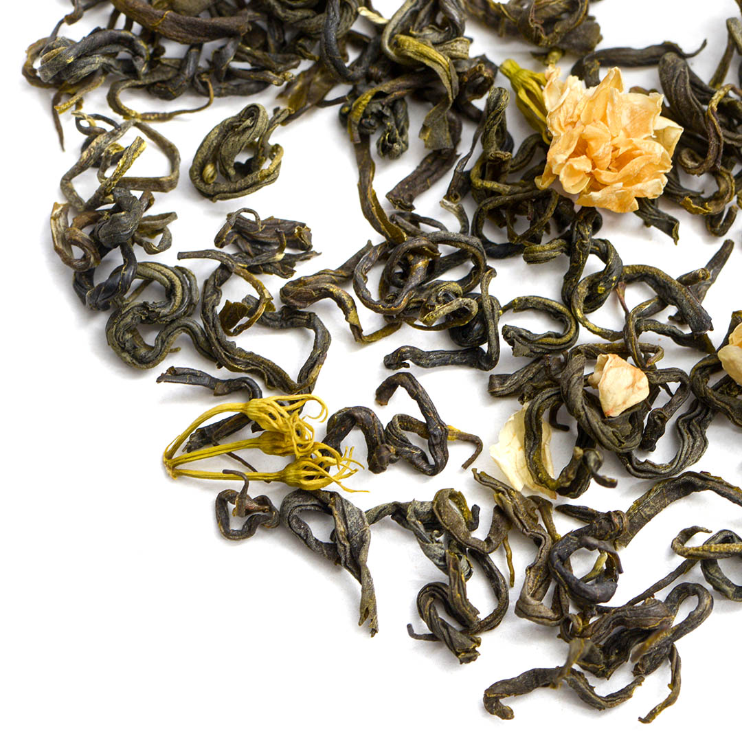 Зеленый чай, натурально ароматизированный цветами Жасмина.