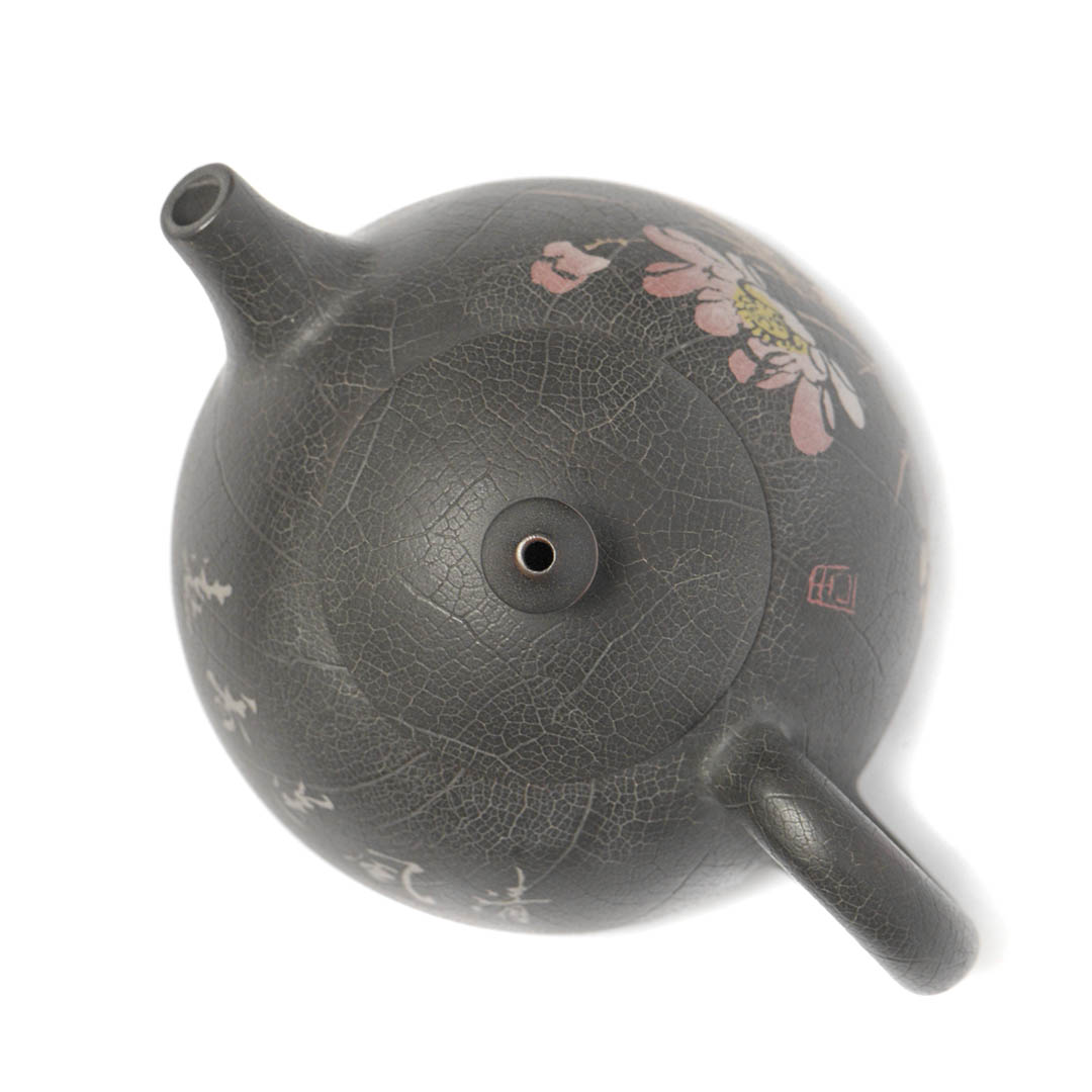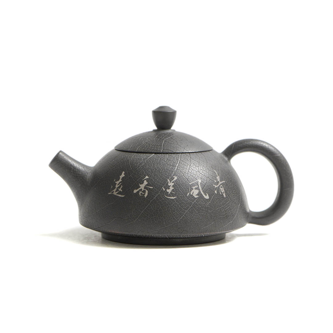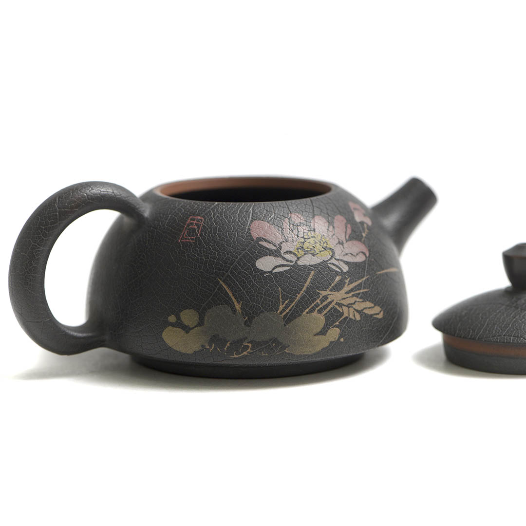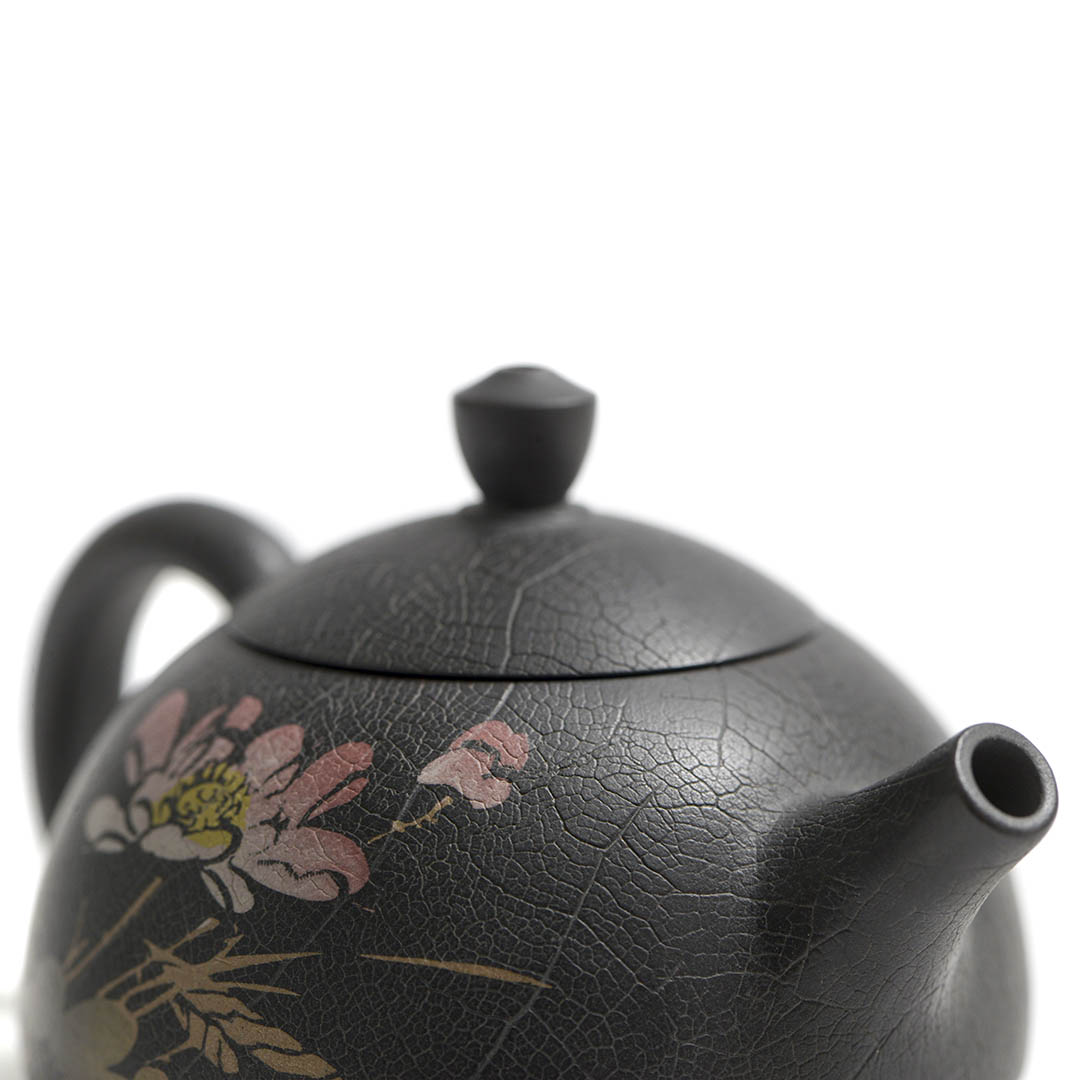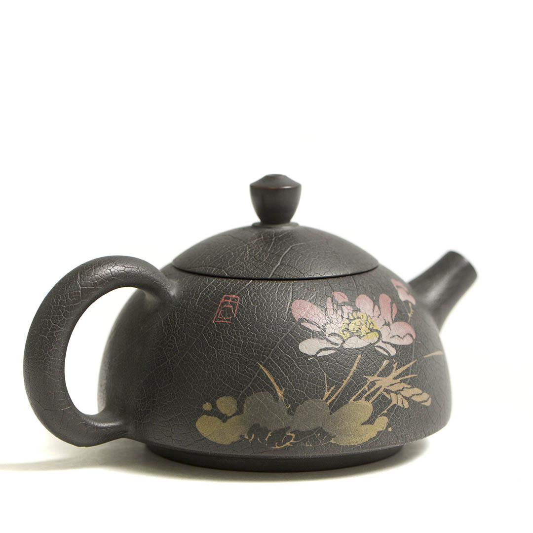 Стенки чайника украшены, инкрустированным в технике Иньке Ян Тянь, изображением Лотоса. В Китае лотос символизирует чистоту, духовное раскрытие, мудрость.