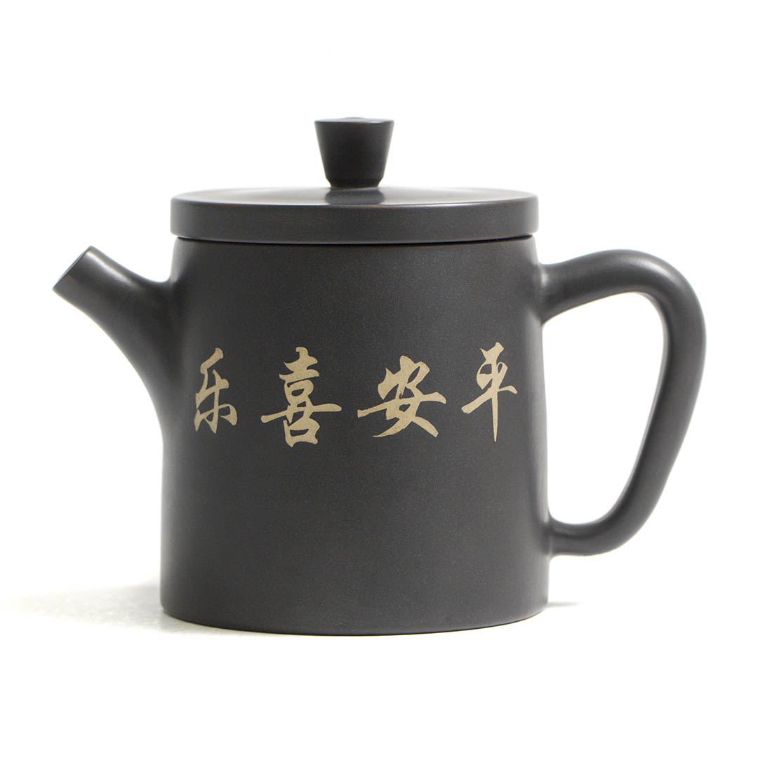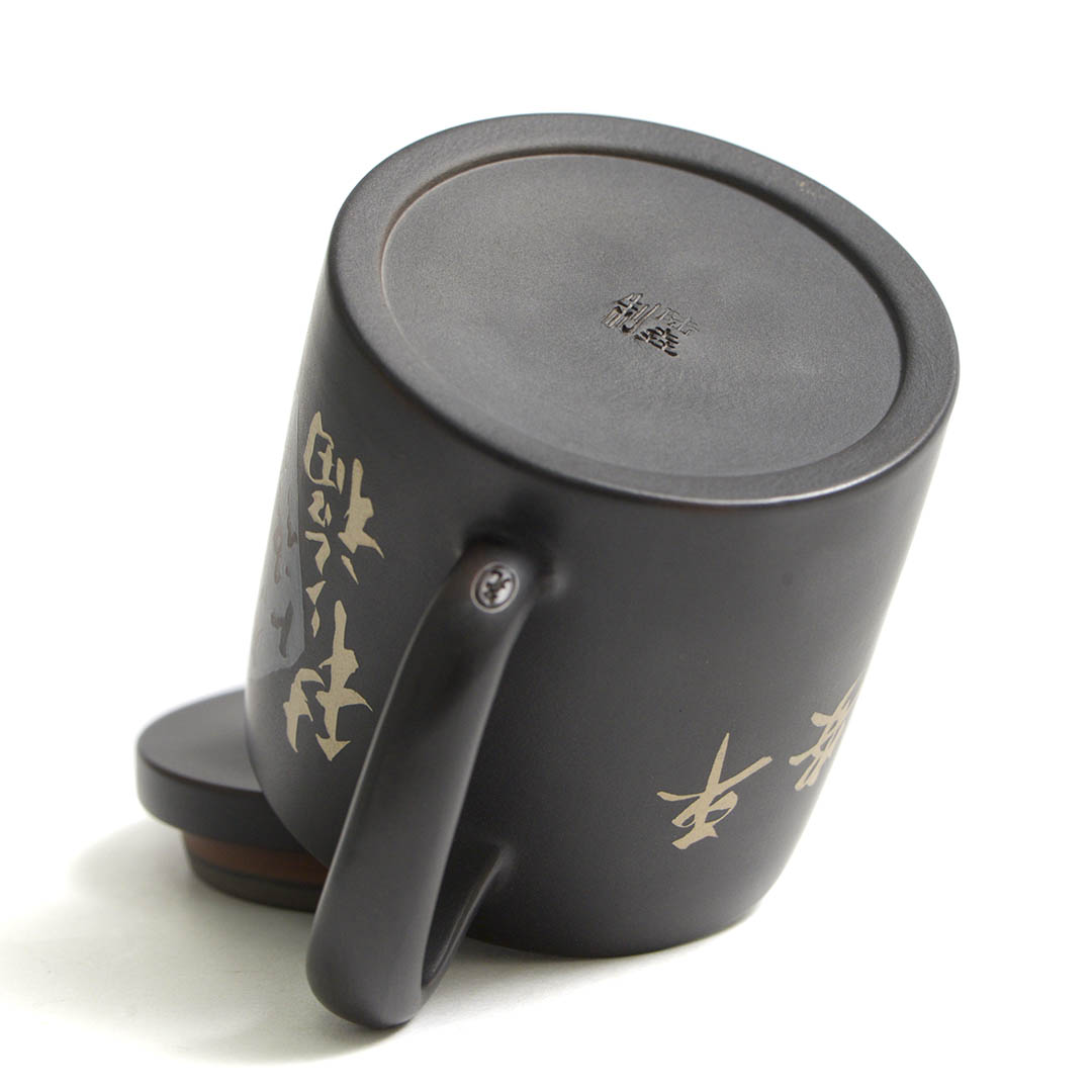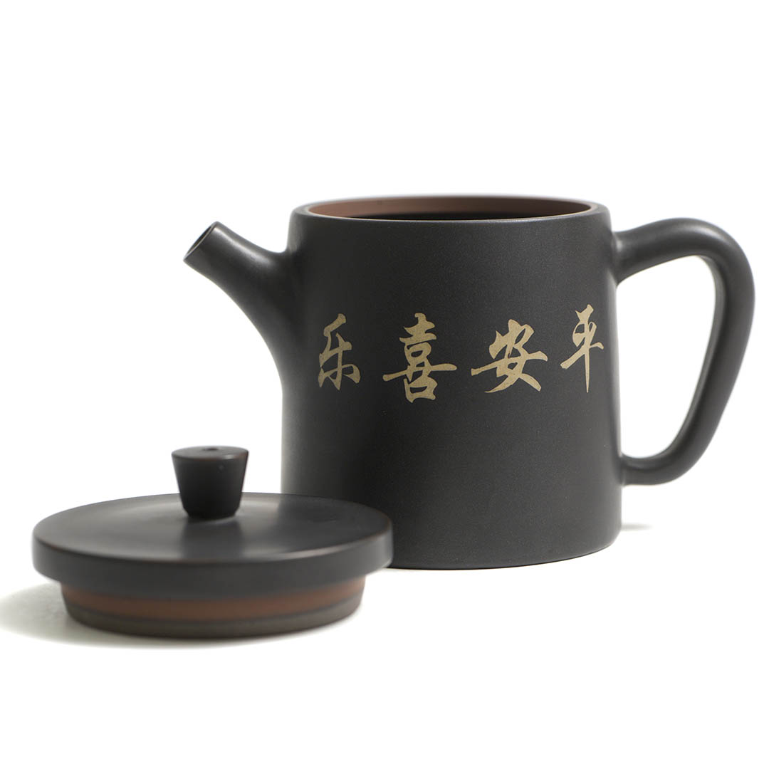 Стенки чайника украшены, инкрустированным в технике Иньке Ян Тянь изображением Ба По ТУ - Восемь Древних Свитков, которое является традиционным для китайского изобразительного искусства.