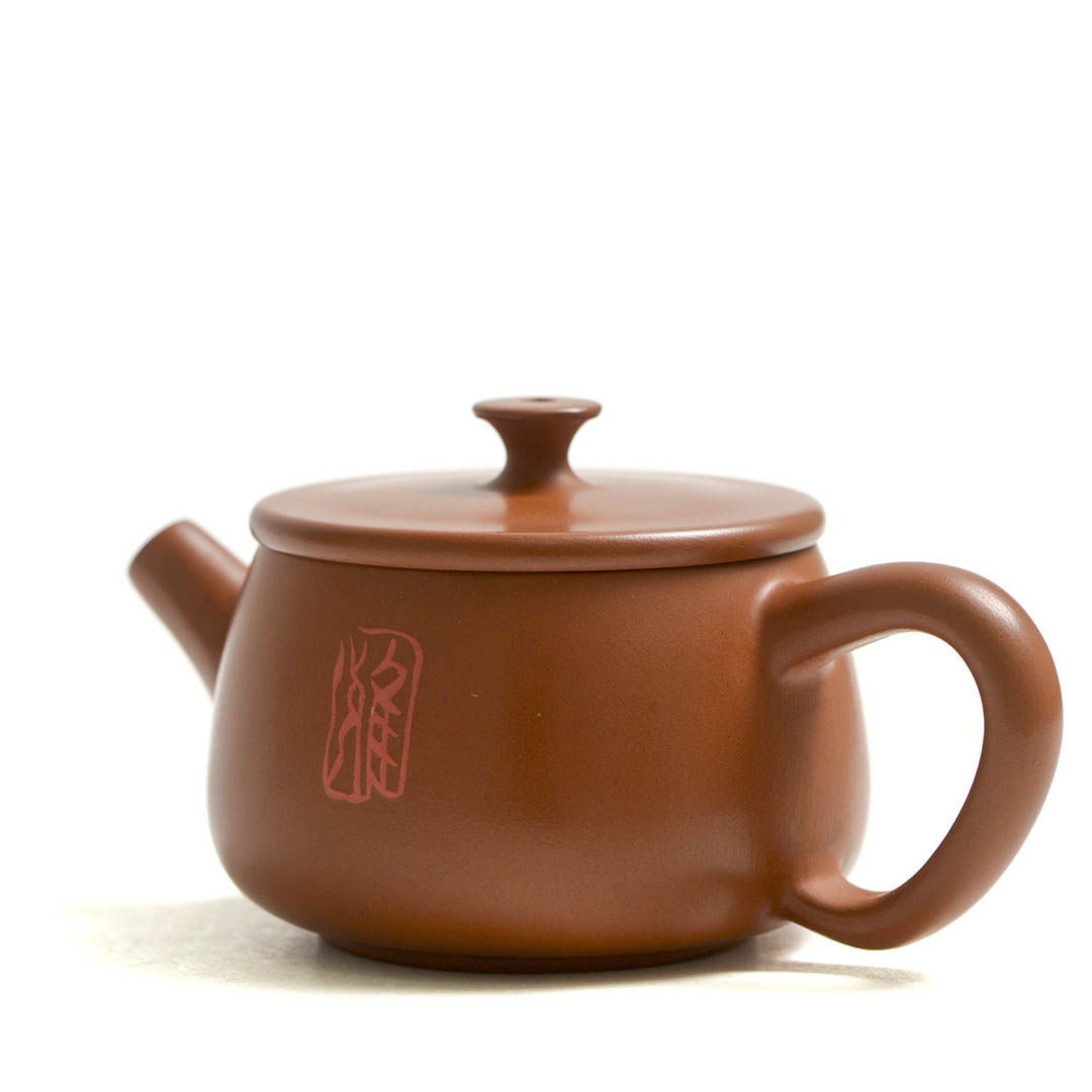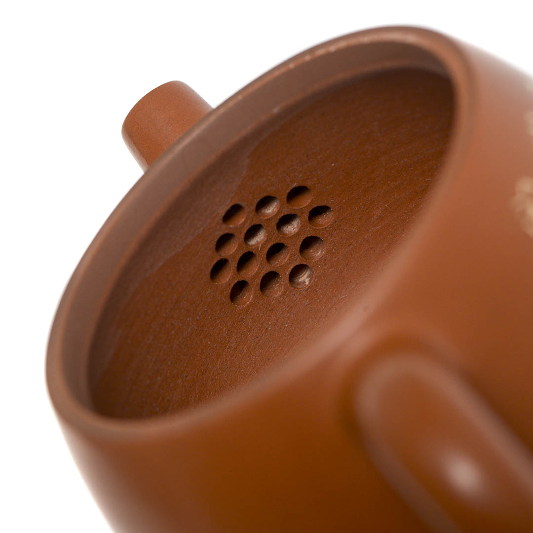 Чайник из цзяньшуйской глины. Вариация формы Хань Ва Ху. Стенки средней толщины. Очень звонкий. Удобная ручка. Объем - 90 мл. Сито классическое, 14 отверстий.