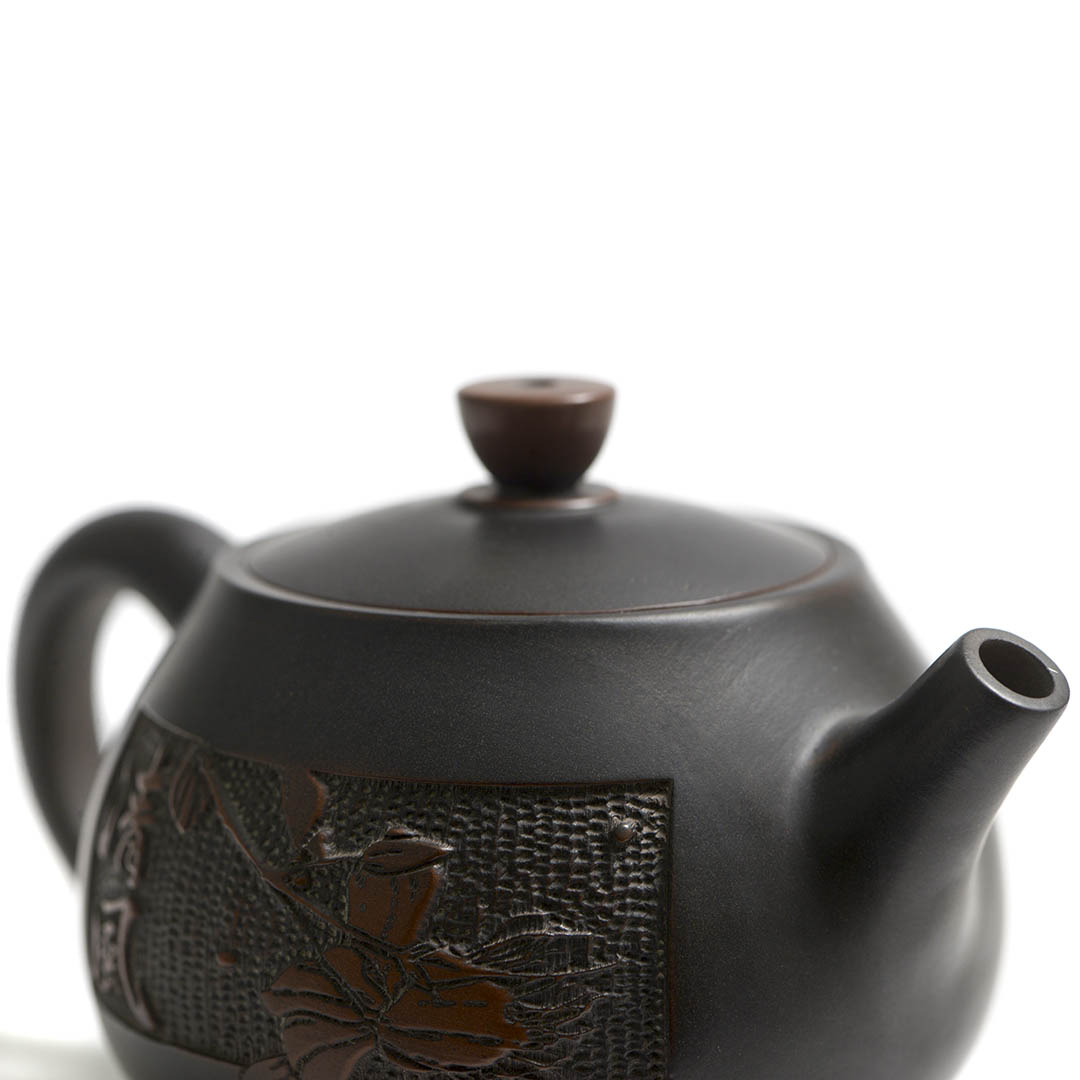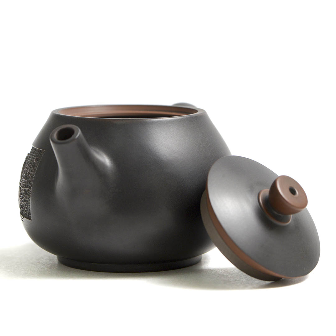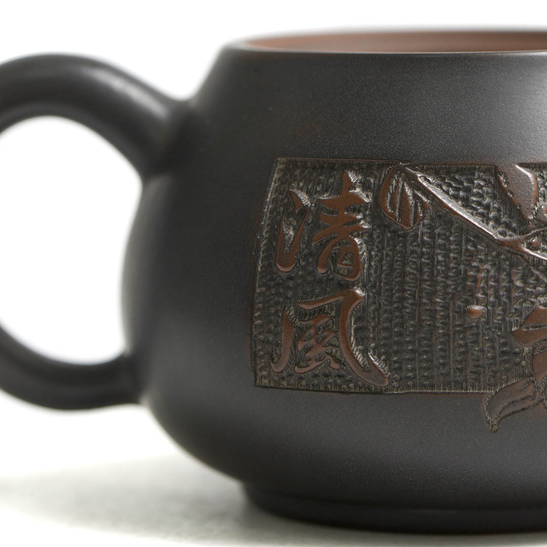 Чайник украшен иероглифами 清风, что означает “Свежий Ветер”, нанесены на чайник как воплощение гармонии и умиротворения. Они символизируют не только свежесть чайного напитка, но и стремление к ясности ума и душевной чистоте во время чайной церемонии. Эта надпись превращает процесс чаепития в медитативный ритуал, где каждый глоток наполнен легкостью и спокойствием природы.