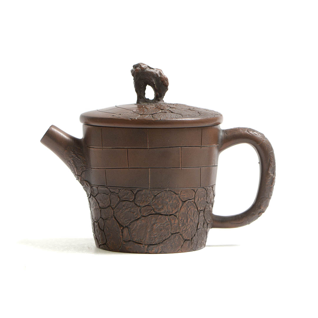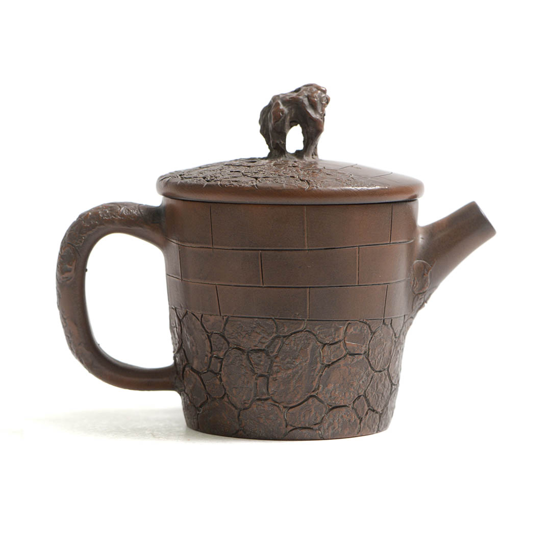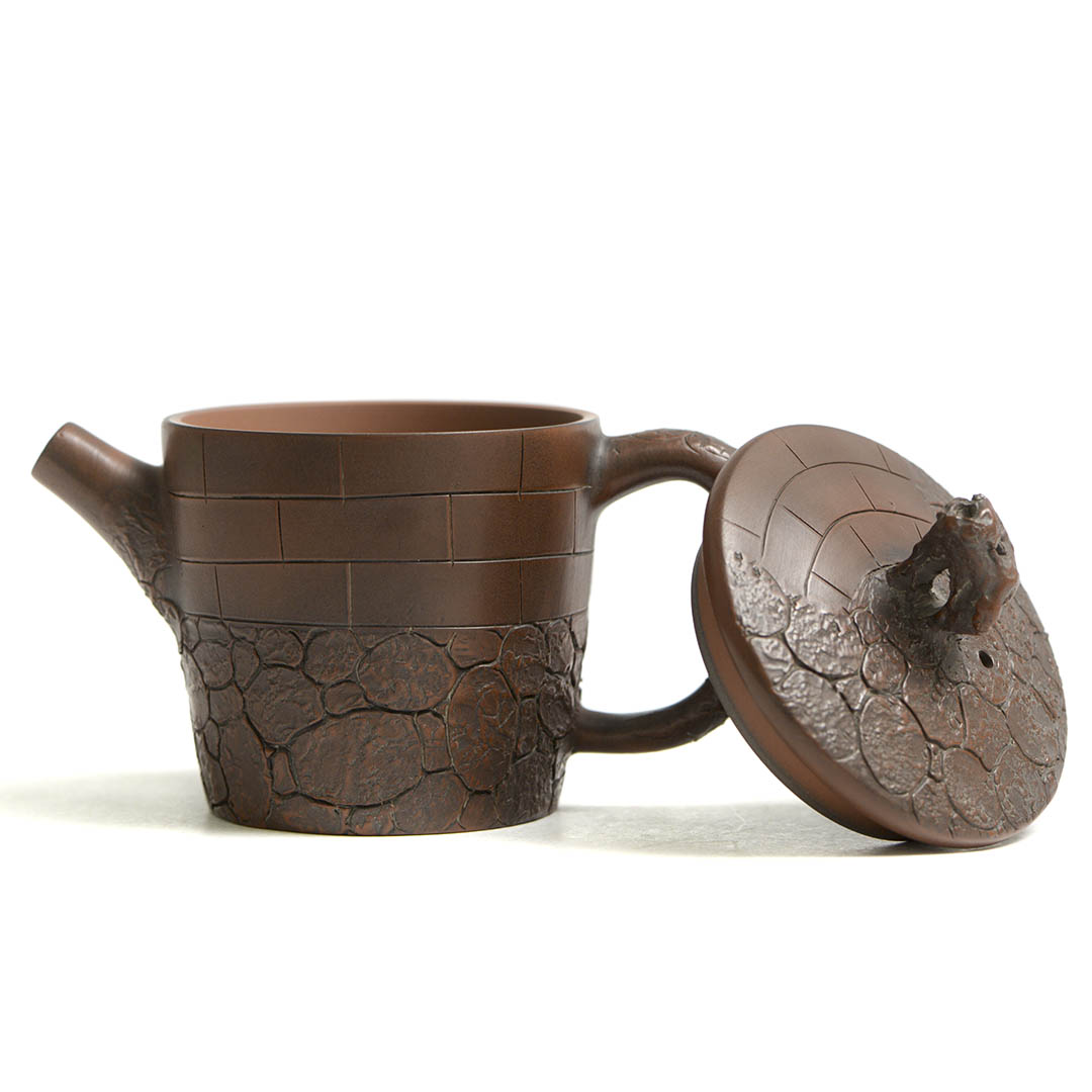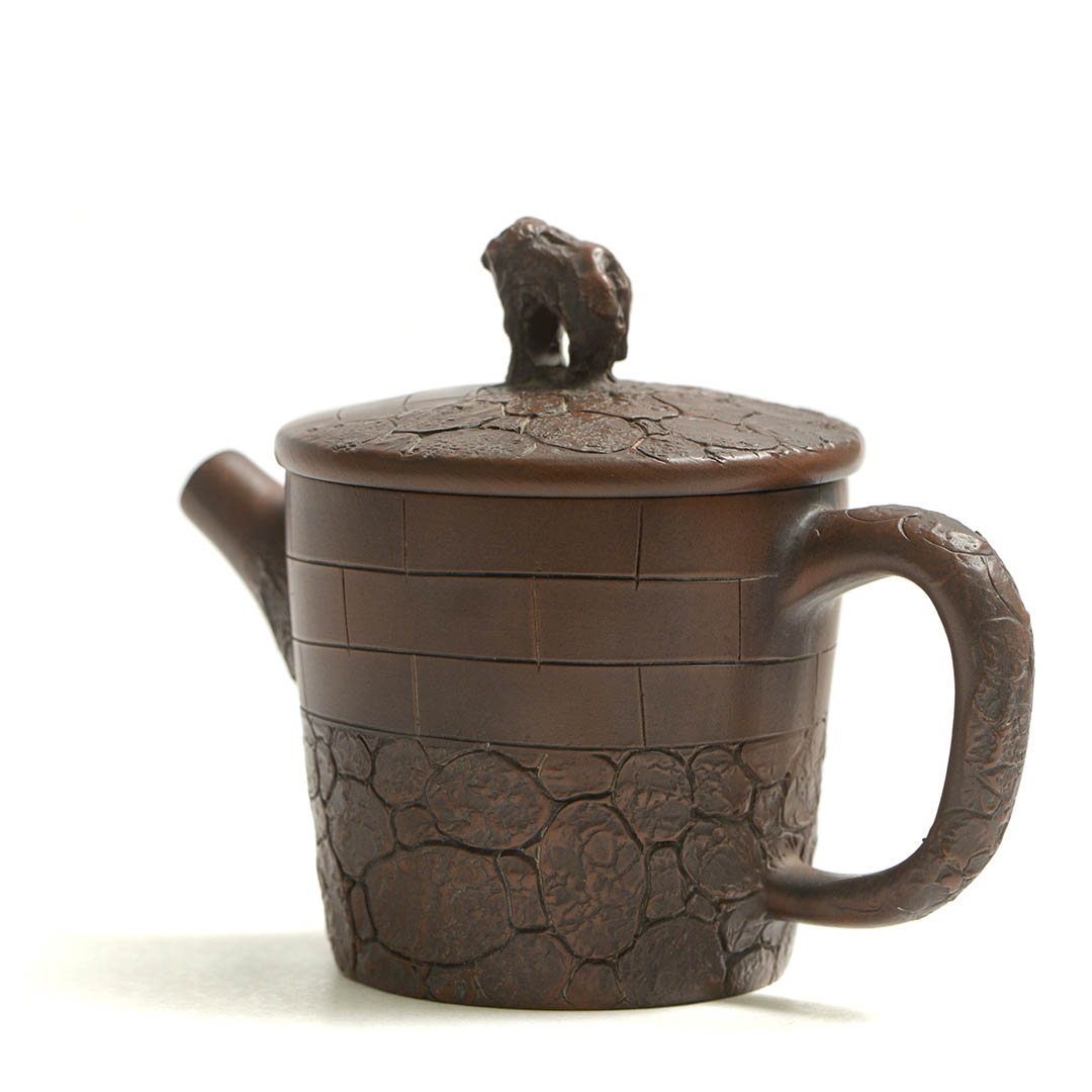 Название и декор чайника отражает композицию из кирпича, дикого камня и дерева представляет собой глубокую философскую миниатюру о гармонии между человеком и вселенной.