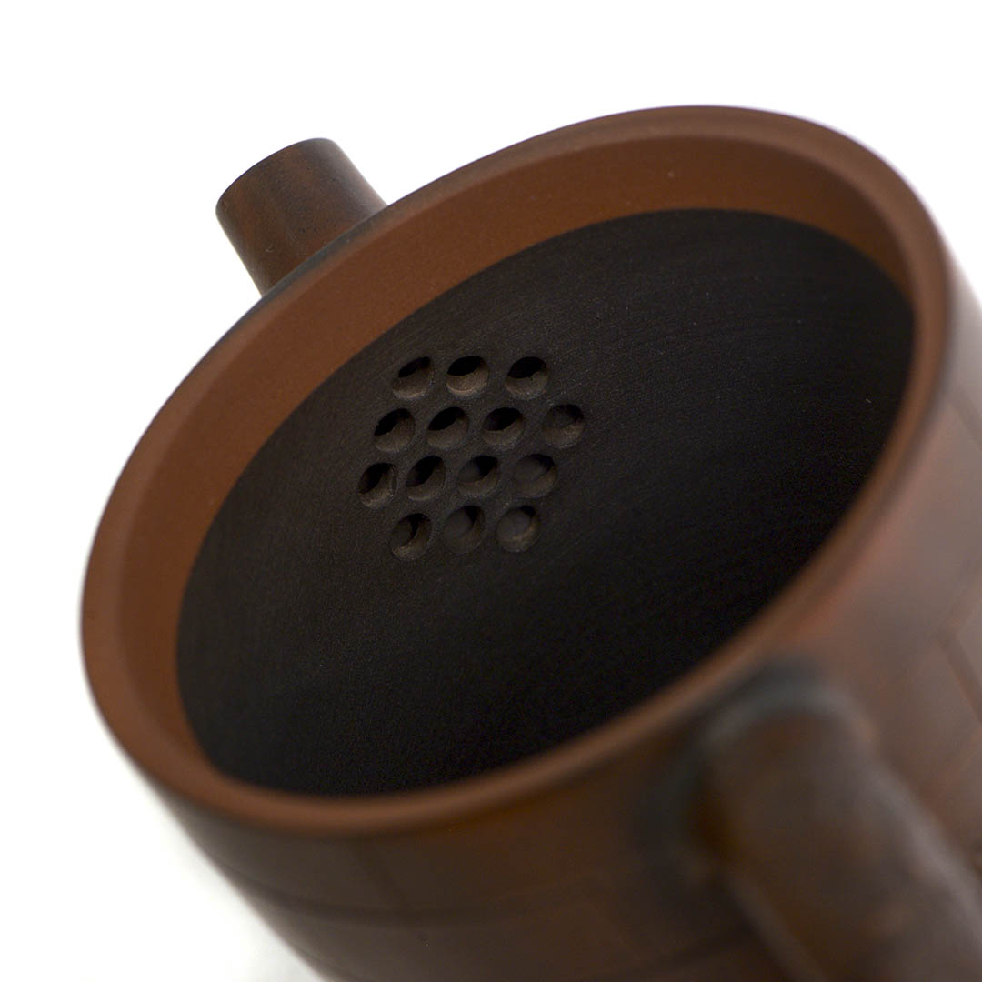 Чайник из цзяньшуйской глины. Вариация формы Хань Ва Ху. Стенки чуть тоньше средних. Очень звонкий. Удобная ручка. Объем - 100 мл. Сито классическое, 14 отверстий.