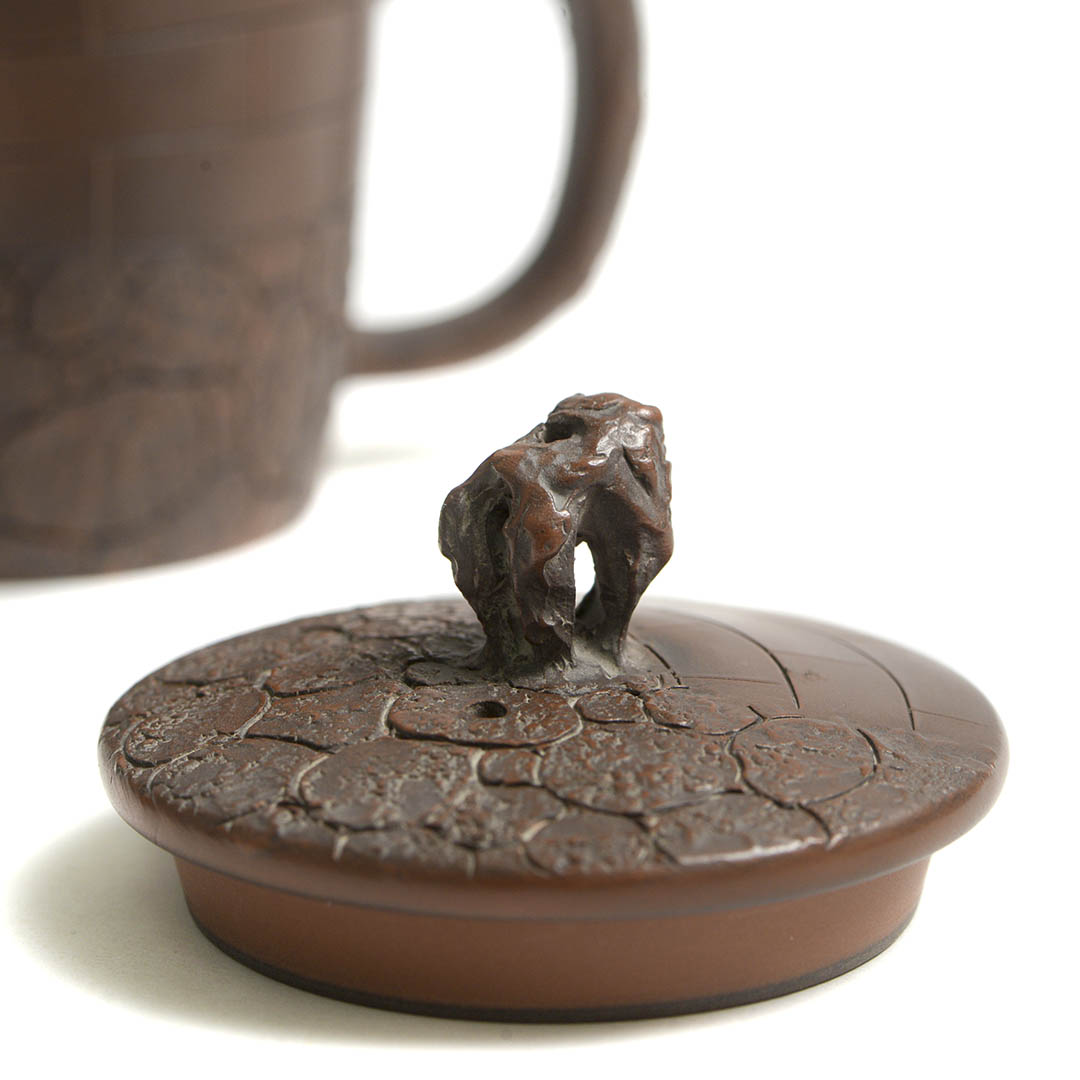 Вместе эти три элемента на чайнике визуализируют даосский принцип единства и взаимодействия противоположностей (инь-ян): рукотворное и нерукотворное, порядок и спонтанность, временное и вечное. Такой декор не просто создаёт эстетику «вечной древности» и рустикальности — он приглашает владельца к созерцанию, напоминая, что истинная красота и мудрость рождаются в балансе между силой природы и творческим духом человека.