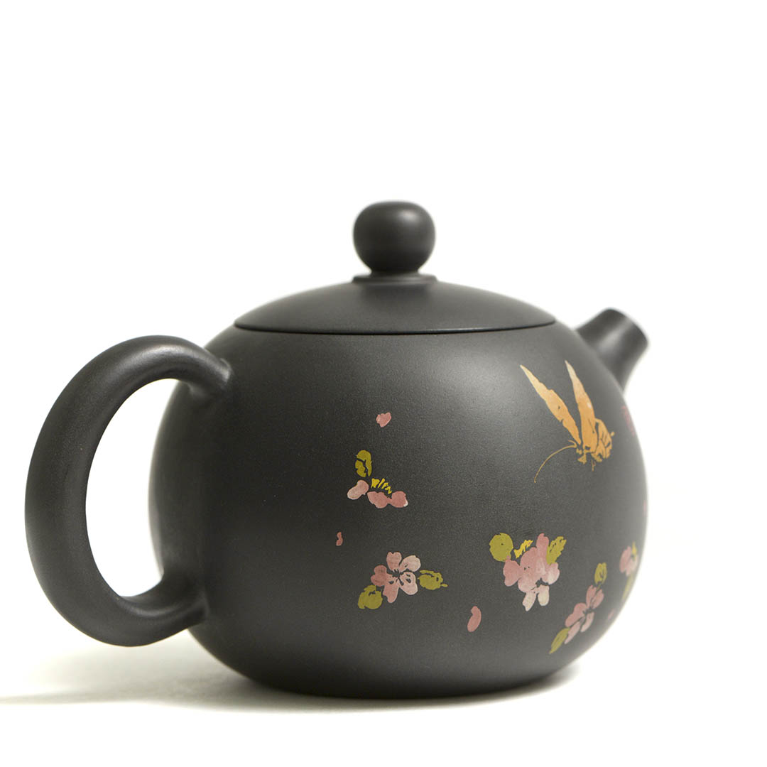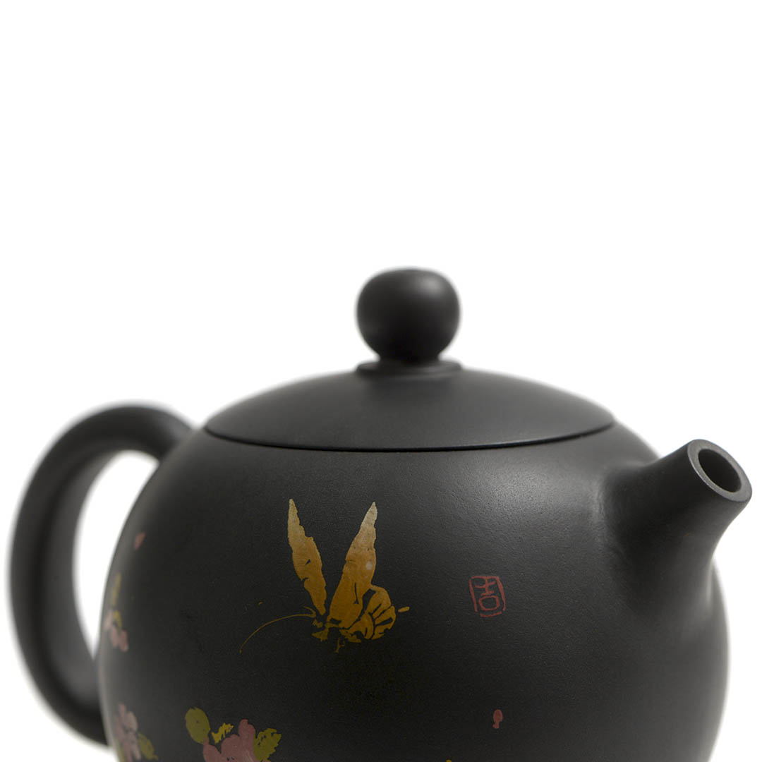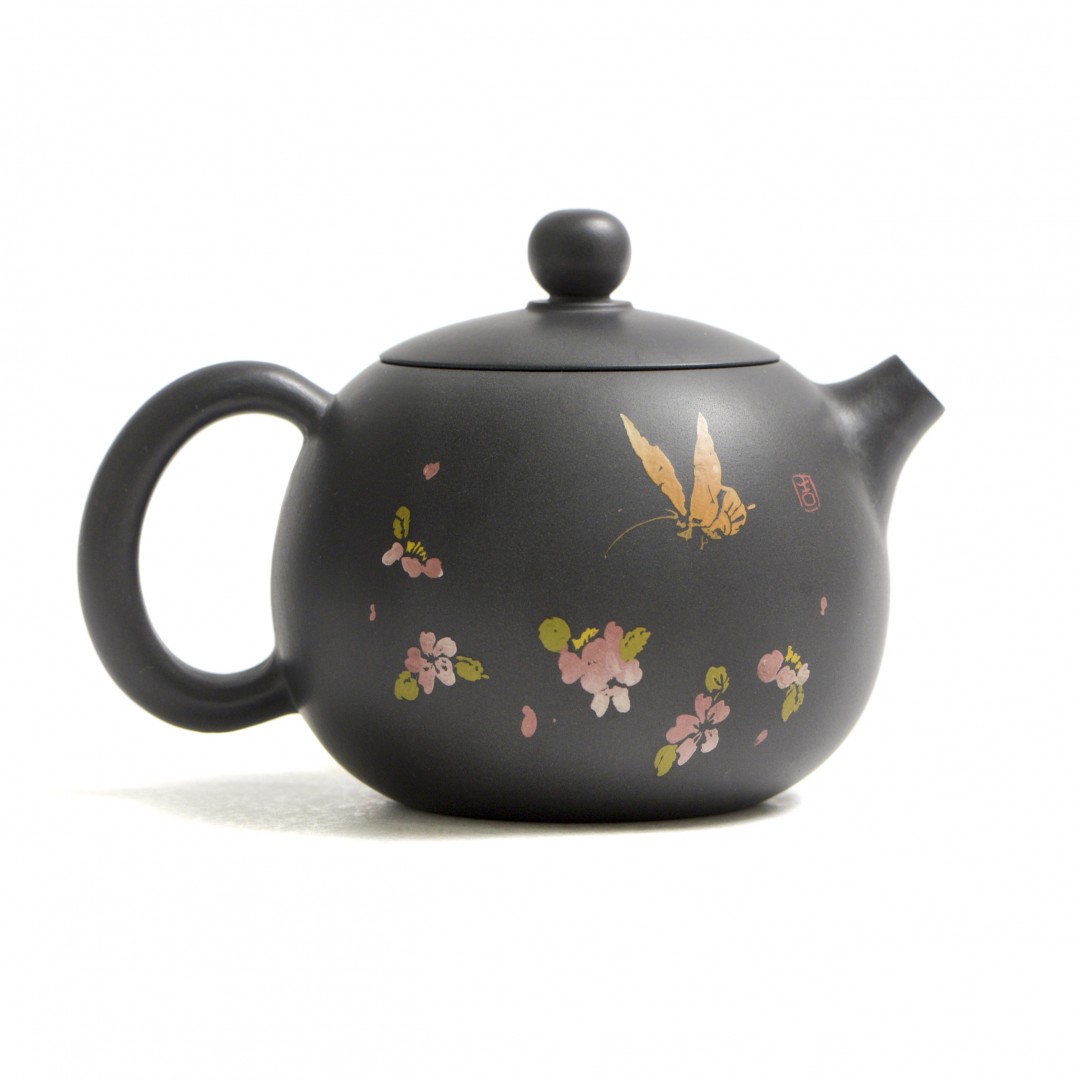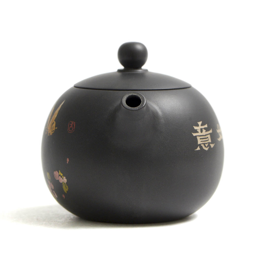 Стенки чайника украшены, инкрустированным в технике Иньке Ян Тянь изображением бабочки среди цветов. Название отсылает к иероглифам на теле чайника. Эта надпись — мощное четырехсимвольные благословение. Она означает: «Пусть все твои мысли и намерения принесут счастье и удачу» или «Как задумал — так и будет к благополучию».