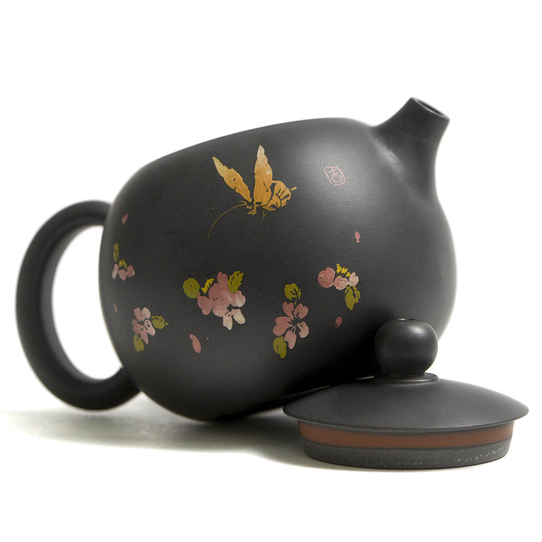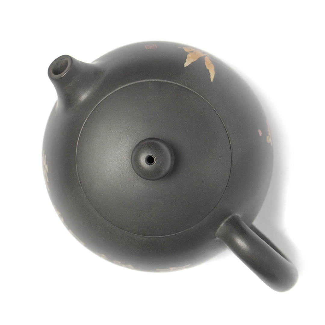 Подробнее о технике Иньке Ян Тянь "Резьба и заполнение". Рисунок на поверхности - это не краска поверх глины, а художественная резка по стенкам, инкрустация. В стенках подсохшего чайника вырезают силуэты нужного рисунка, затем эти выемки заполняются глиной другого цвета. Заполнение может выполняться с использованием разных оттенков или цветов глины, чтобы создать контраст и добавить эстетики. Цвета подбираются с помощью особых вкраплений из смеси глины с минеральными красками. Таких циклов может быть несколько, в зависимости от желаемой детализации. При видимой поначалу простоте рисунка, эта техника скрывает под собой огромную сложную работу.