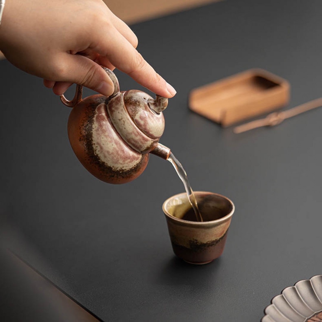 Декор выполнен с помощью технологии “Потока Глазури” – перед обжигом на изделие наносится слой глазури, она плавится под высокими температурами, обычно 1200–1300°C, и начинает стекать под действием силы тяжести. Каждый экземпляр неповторим, копировать узор невозможно.