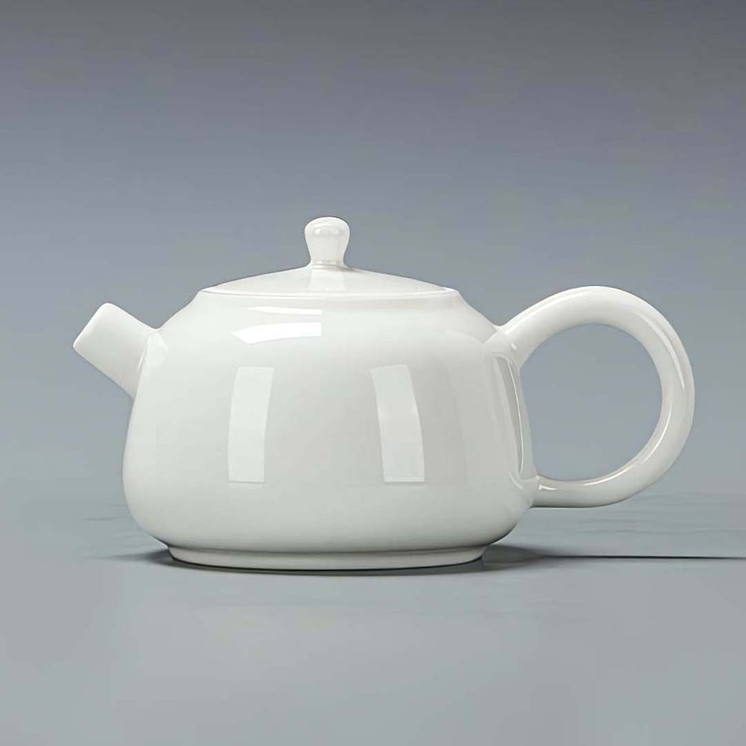 Чайник покрыт белой глянцевой глазурью.