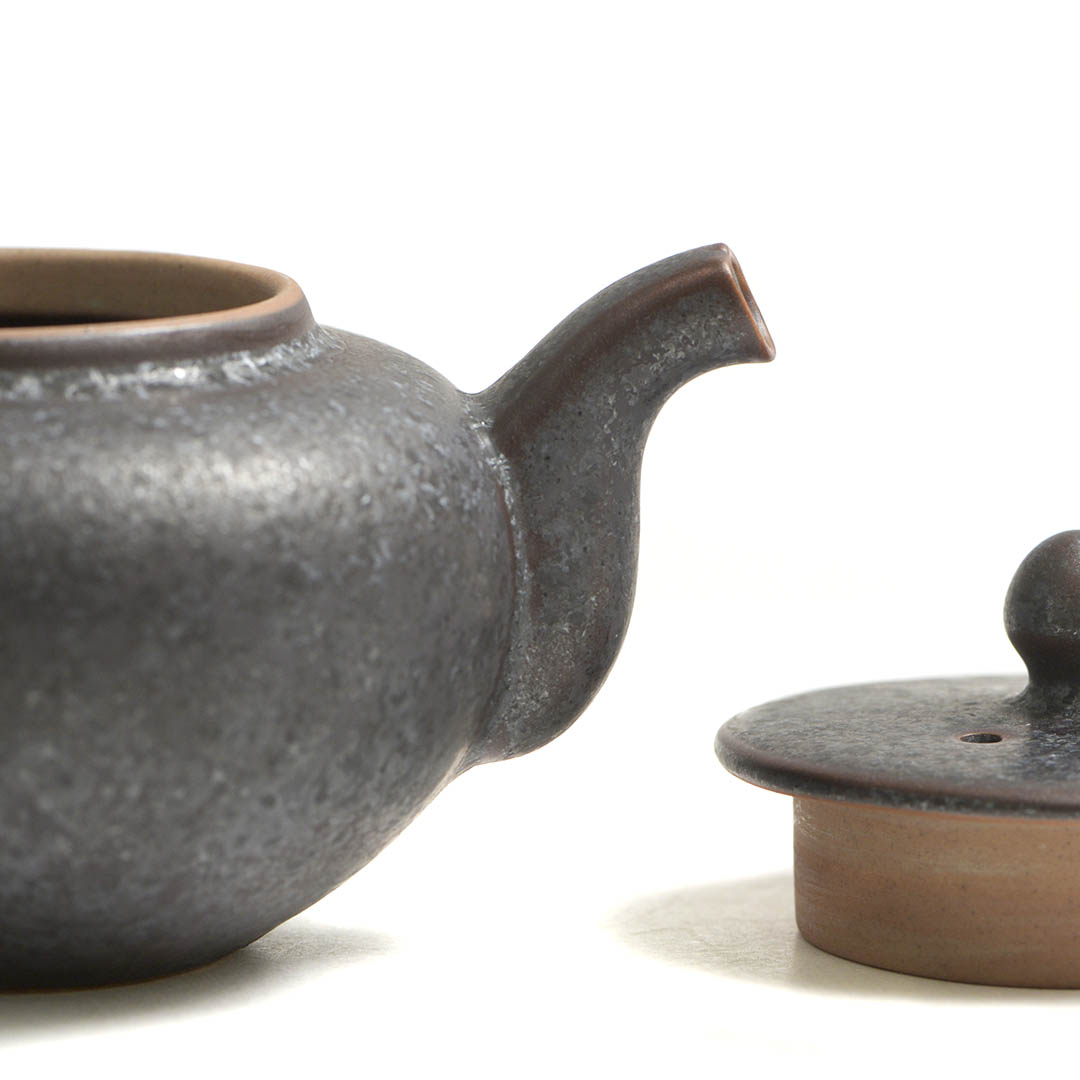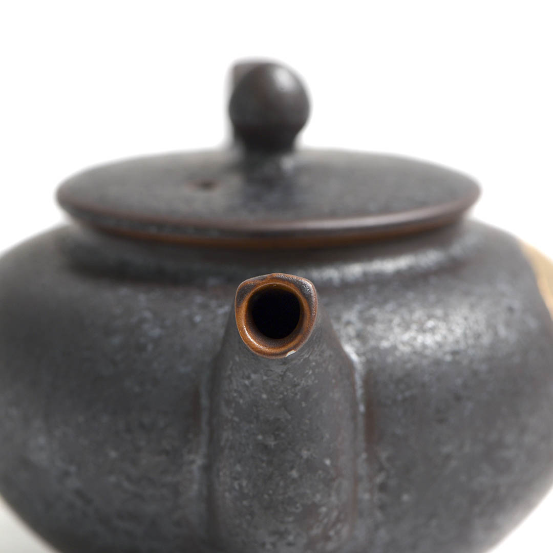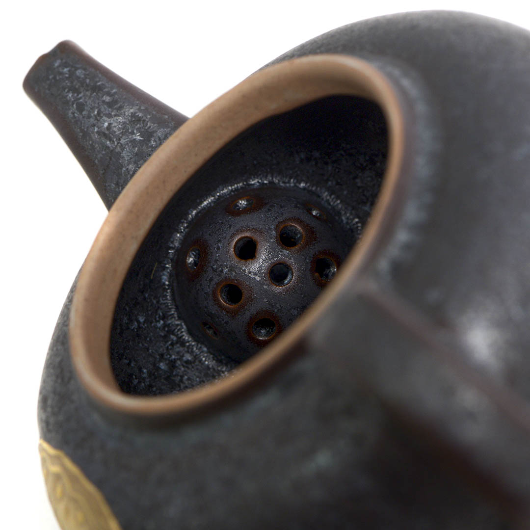 Керамический чайник родом из Дэхуа. Толстостенный, тяжелый. Сито выполнено в виде гнезда.