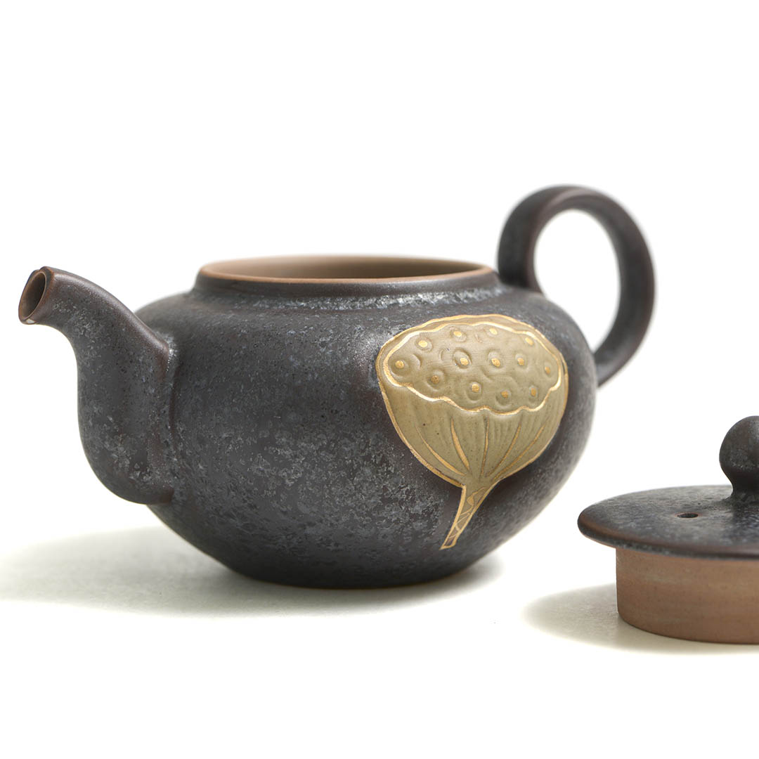Чайник украшен фактурным изображением лотоса. В Китае лотос символизирует чистоту, духовное раскрытие, мудрость.