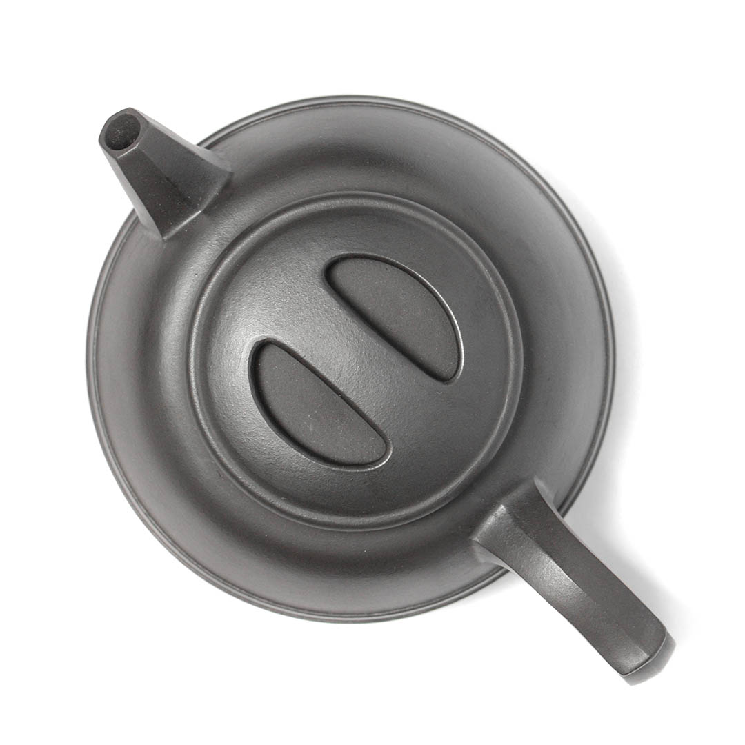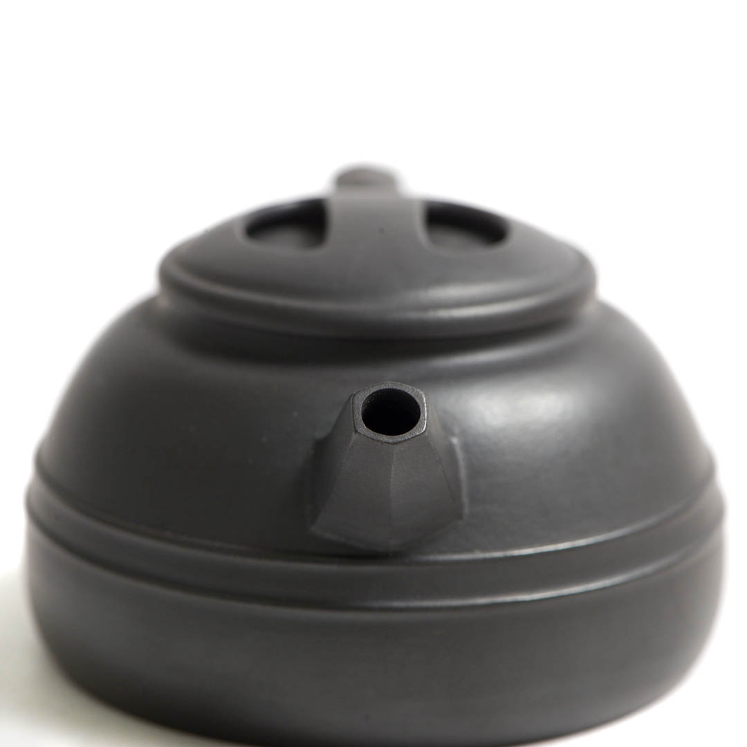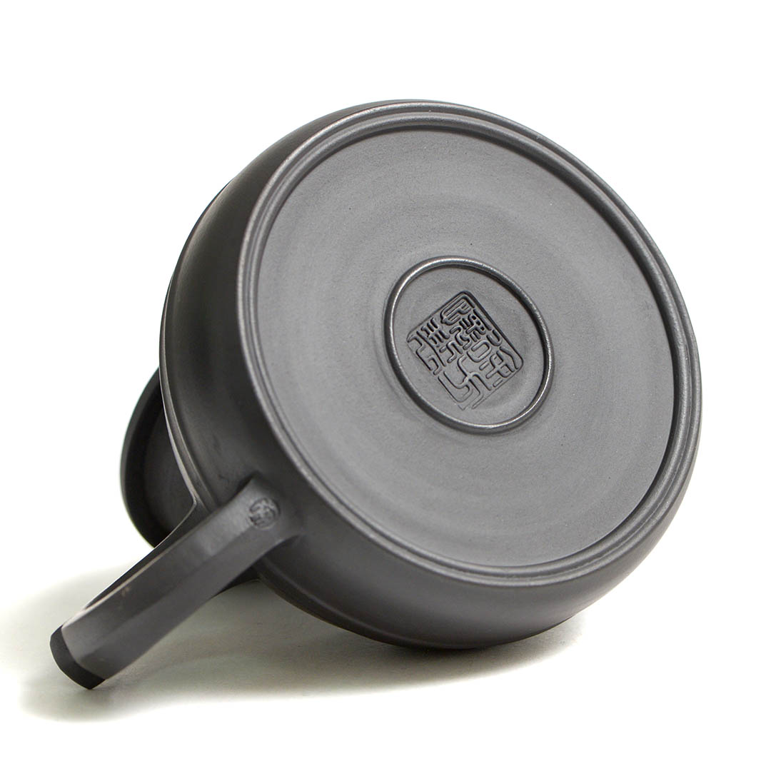 Чайник из исинской глины Хэй Чжу Ни. Авторское видение формы Бань Юэ - "Полумесяц". Крышечка выполена в стиле Ню Гай – “Нос Быка”. Одна из версий гласит, что форма Ню Гай вдохновлена старинными чайниками эпохи Мин, которые использовались в сельских районах Китая. Часто встречается перевод "Ню Гай" как "крышка с коровьим носом", хотя в Китае это скорее "крышка с бычьим кольцом". Отличная ручная работа.